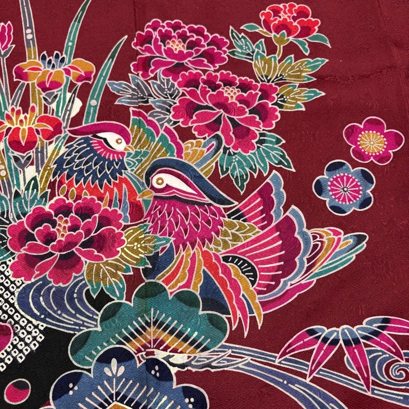 【着物ランク】秀品 【素材】正絹 【身丈】約164.5cm 【裄丈】約68.5cm 【袖丈】約105.5cm 【袖幅】約35.5cm 【前幅】約23.5cm 【後幅】約29.5cm 【サイズ】L 【着物仕立て】袷 【着用時期】10~5月 【状態ランク】ランクB 【着物着用シーン】成人式、謝恩会