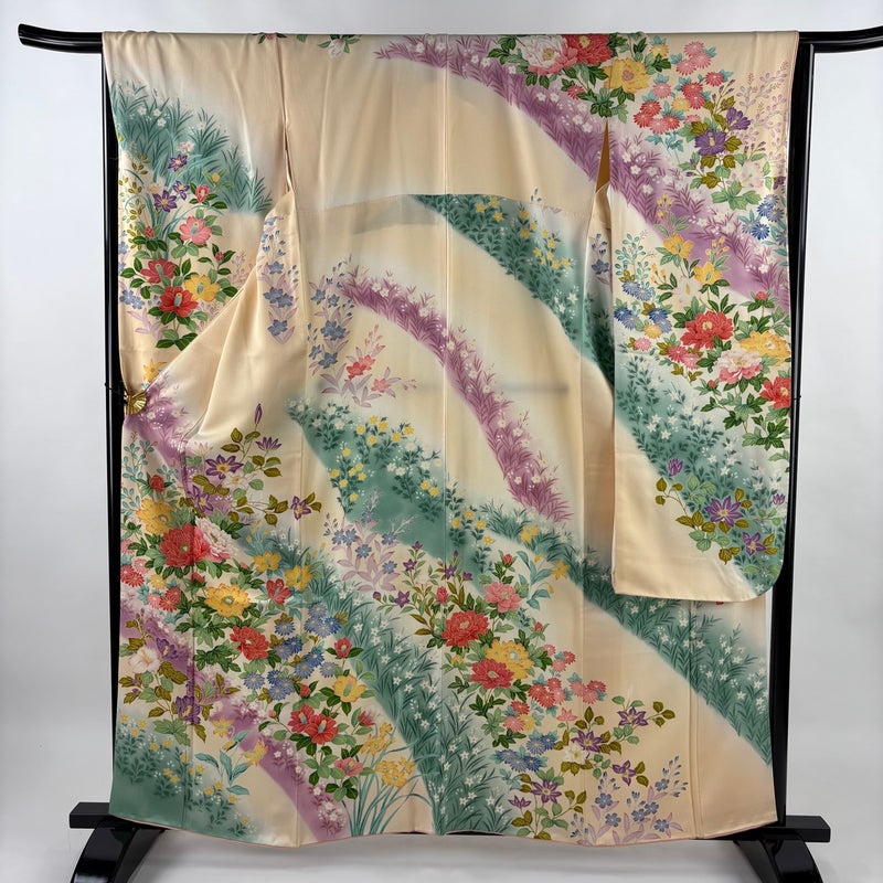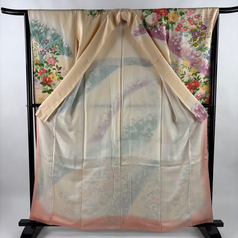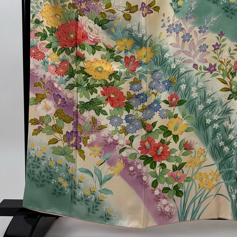 【着物ランク】秀品 【素材】正絹 【身丈】約160cm 【裄丈】約65.5cm 【袖丈】約109cm 【袖幅】約33.5cm 【前幅】約24cm 【後幅】約30.5cm 【サイズ】M 【着物仕立て】袷 【着用時期】10~5月 【状態ランク】ランクB 【着物着用シーン】成人式、謝恩会