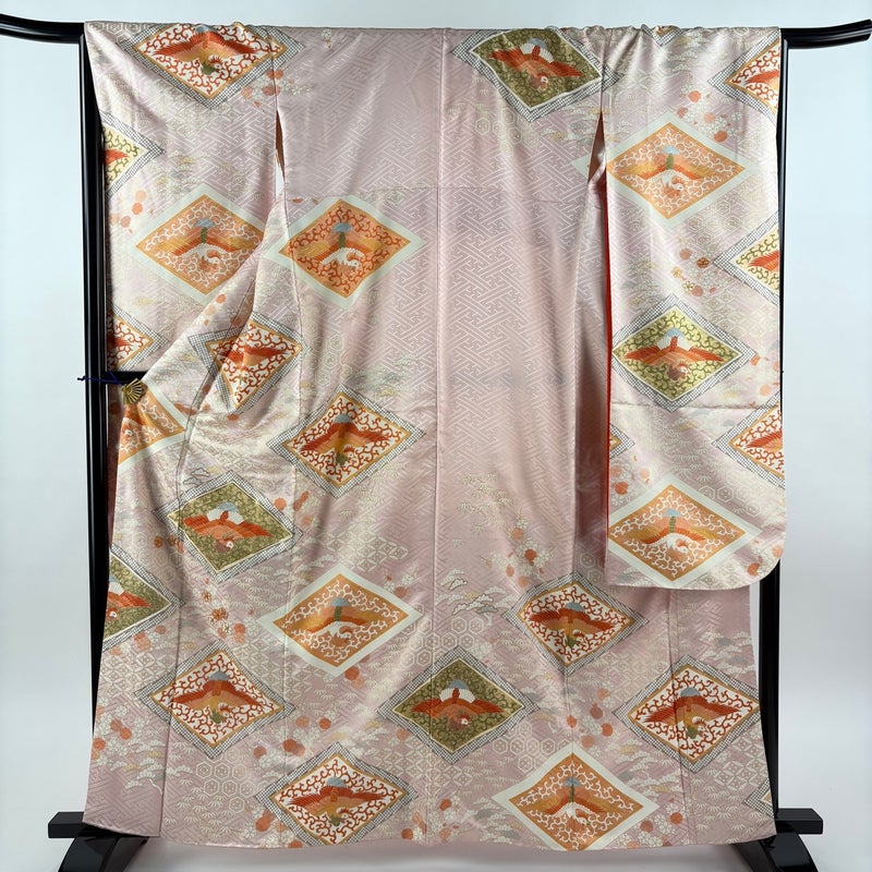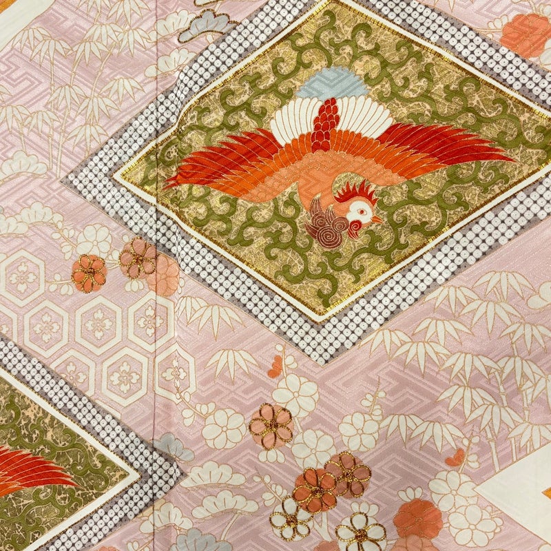 【振袖】 赤系 薄ピンク 秀品 B 約160cm~約169cm 裄丈67cm-68cm (M)size 袖丈91cm以上 7990-9980 二万以下