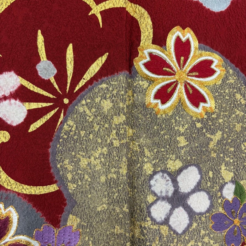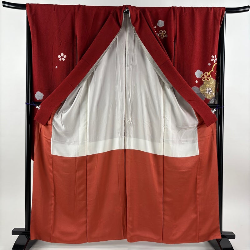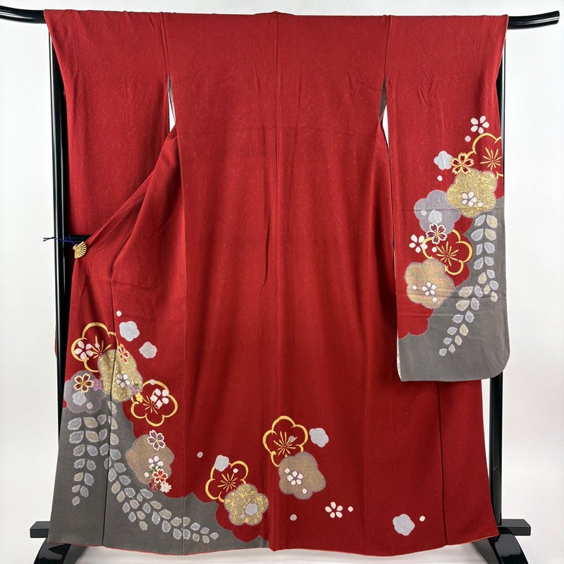 【振袖】 赤系 赤 秀品 B 約160cm~約169cm 裄丈67cm-68cm (M)size 袖丈91cm以上 7990-9980 二万以下