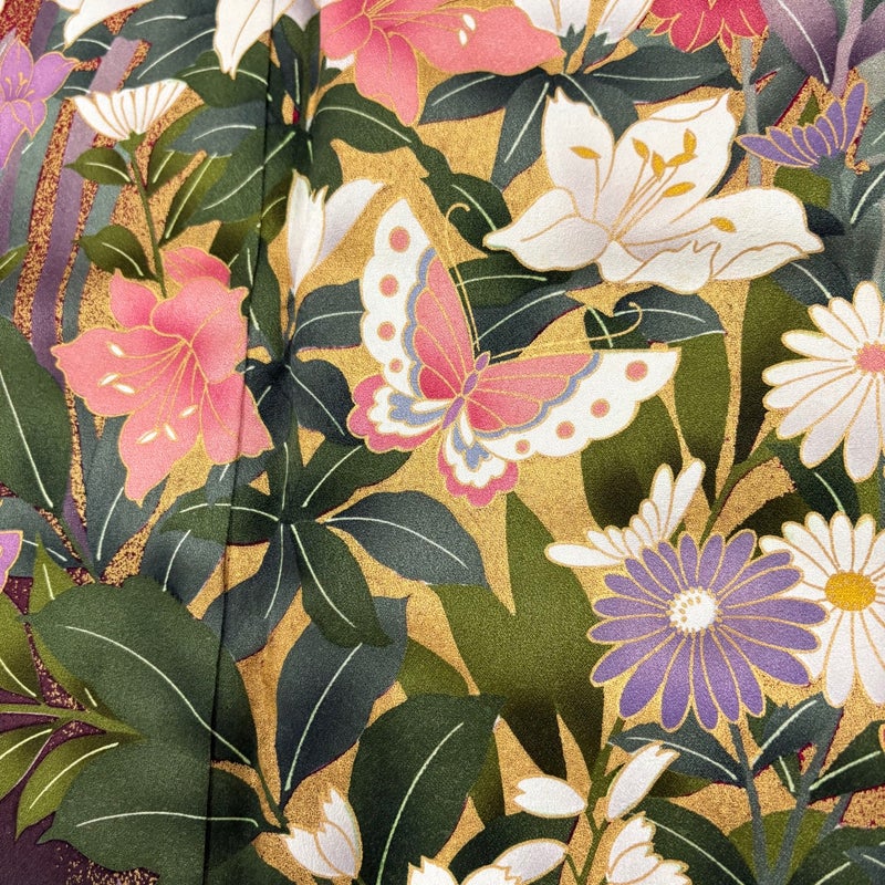 【着物ランク】秀品 【素材】正絹 【身丈】約166cm 【裄丈】約69cm 【袖丈】約114.5cm 【袖幅】約35.5cm 【前幅】約23.5cm 【後幅】約29.5cm 【サイズ】L 【着物仕立て】袷 【着用時期】10~5月 【状態ランク】ランクB 【着物着用シーン】成人式、謝恩会