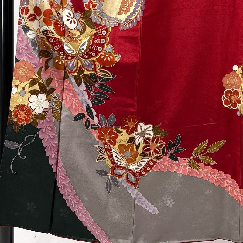 【振袖】 赤系 赤 秀品 A 約150cm~約159cm 裄丈63cm-64cm (M)size 袖丈91cm以上 9990-29990 美品 二万以下