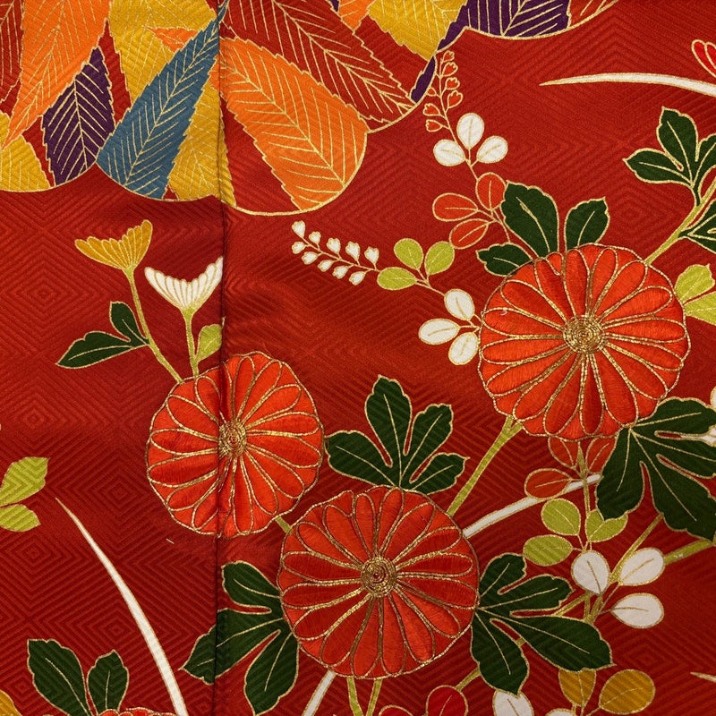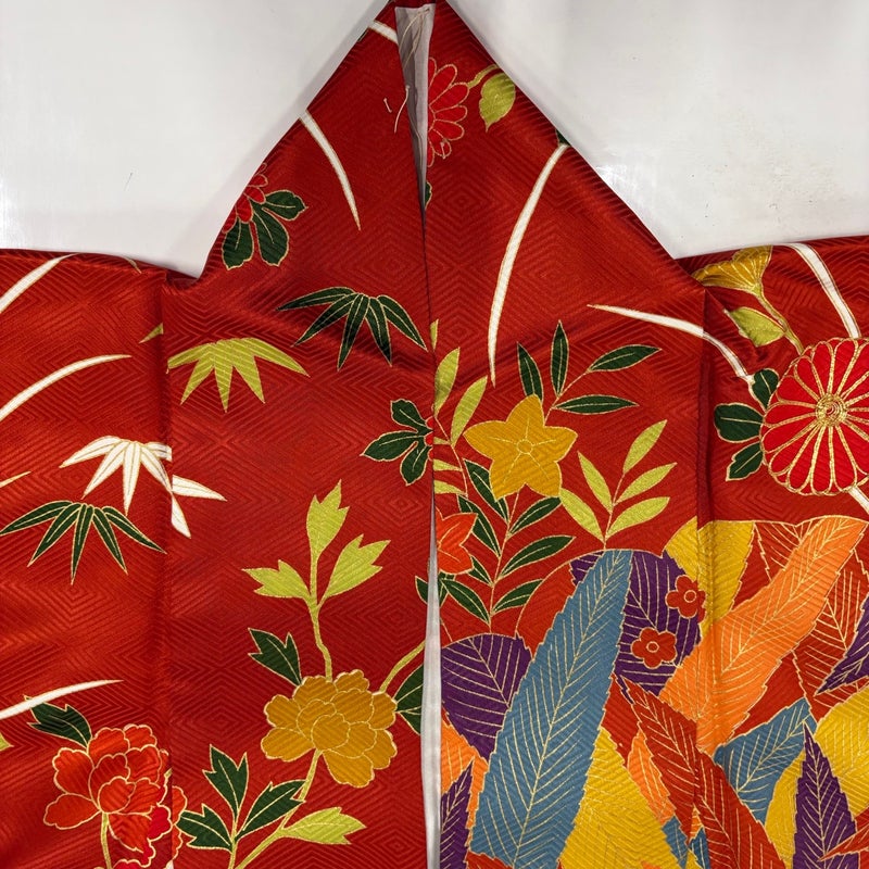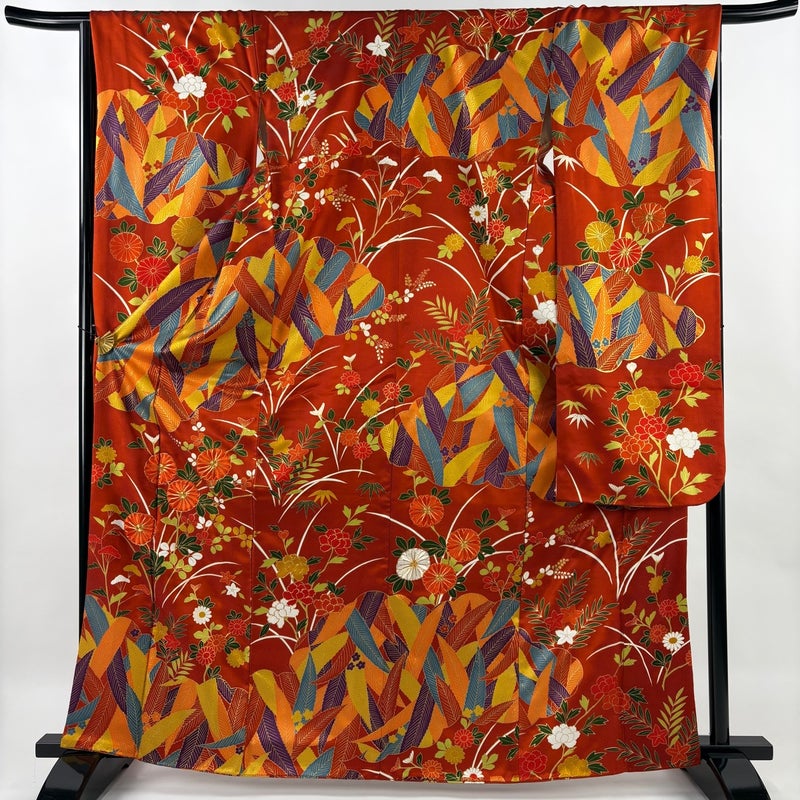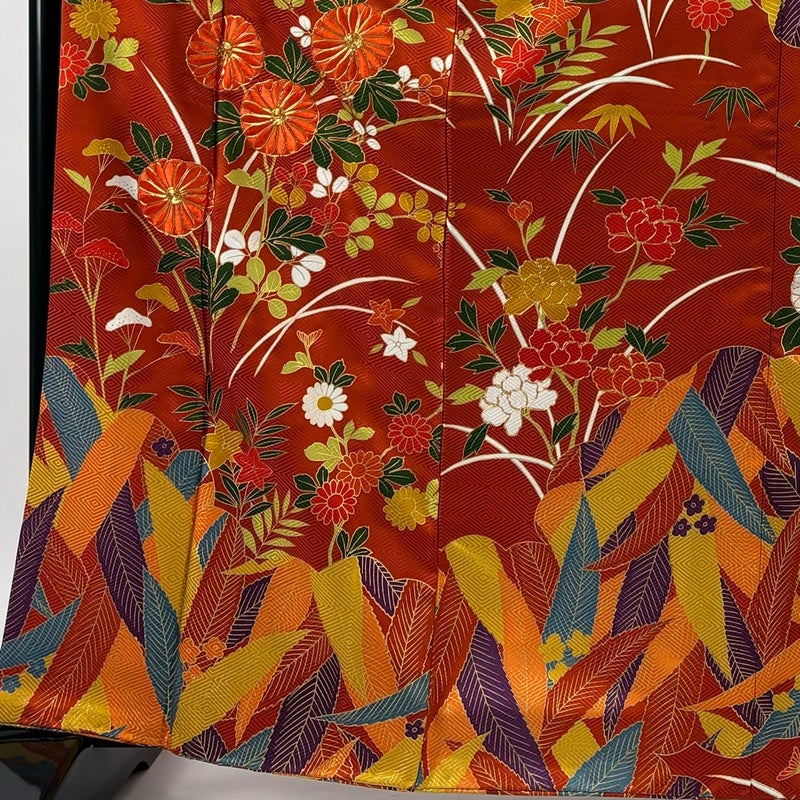 【振袖】 赤系 オレンジ 秀品 B 約160cm~約169cm 裄丈67cm-68cm (M)size 袖丈91cm以上 7990-9980 二万以下