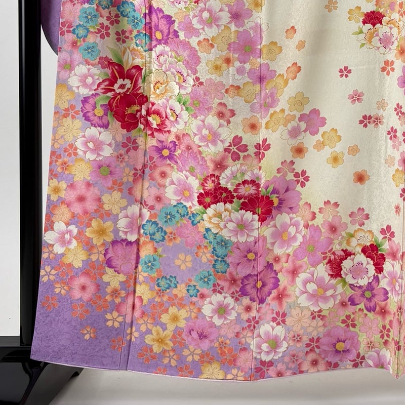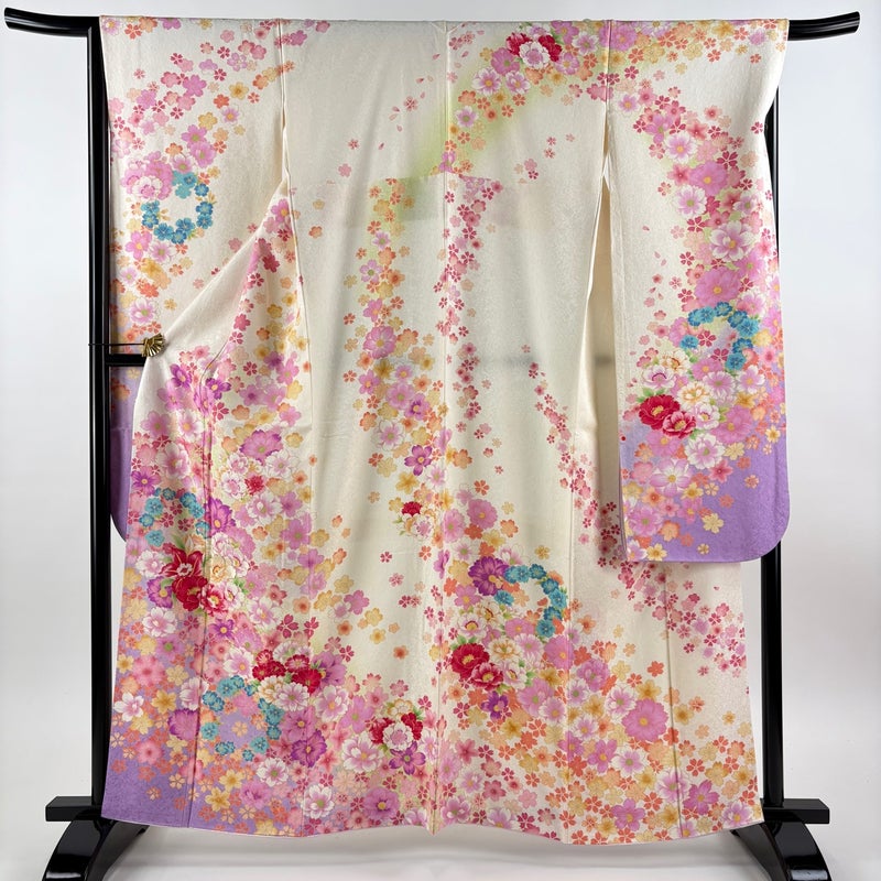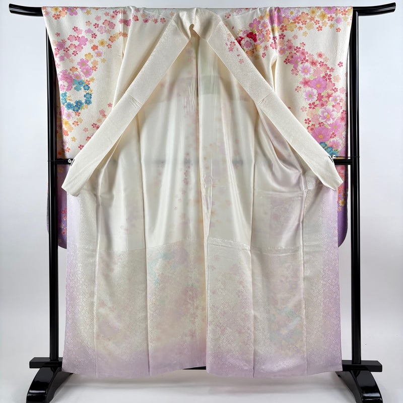 【振袖】 白系 クリーム 名品 A 約160cm~約169cm 裄丈66cm (M)size 袖丈91cm以上 9990-29990 美品 二万以下