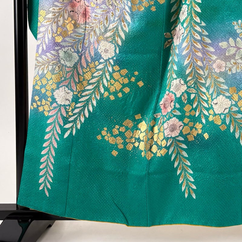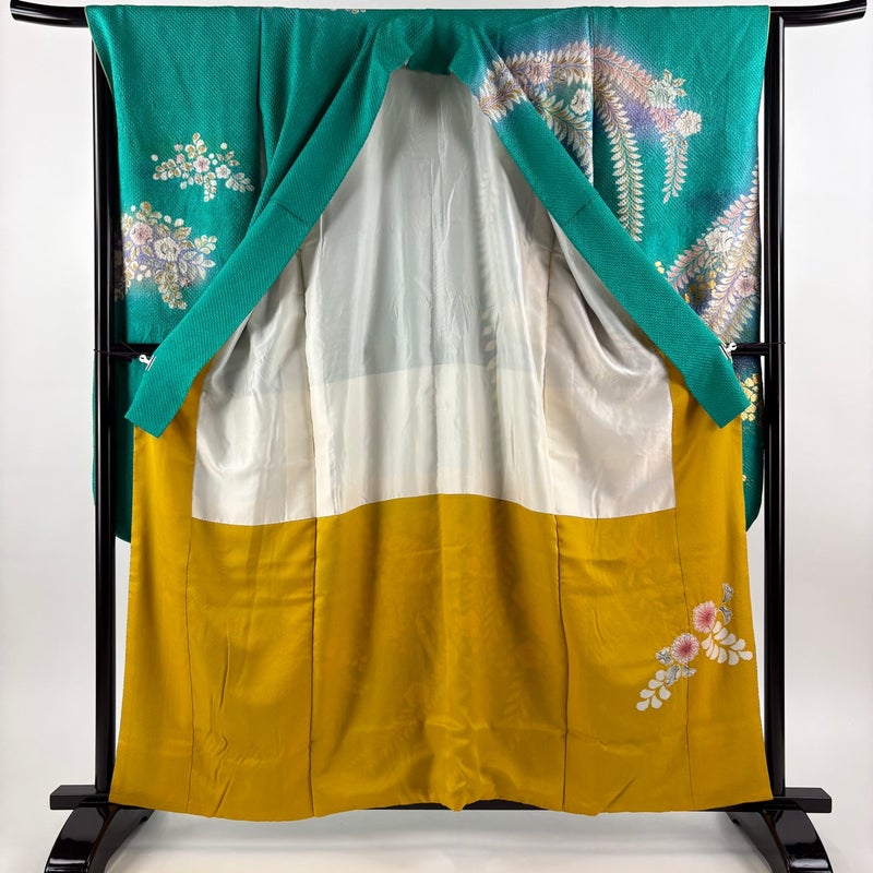 【振袖】 緑系 緑 名品 B 約160cm~約169cm 裄丈65cm (M)size 袖丈91cm以上 9990-29990 二万以下