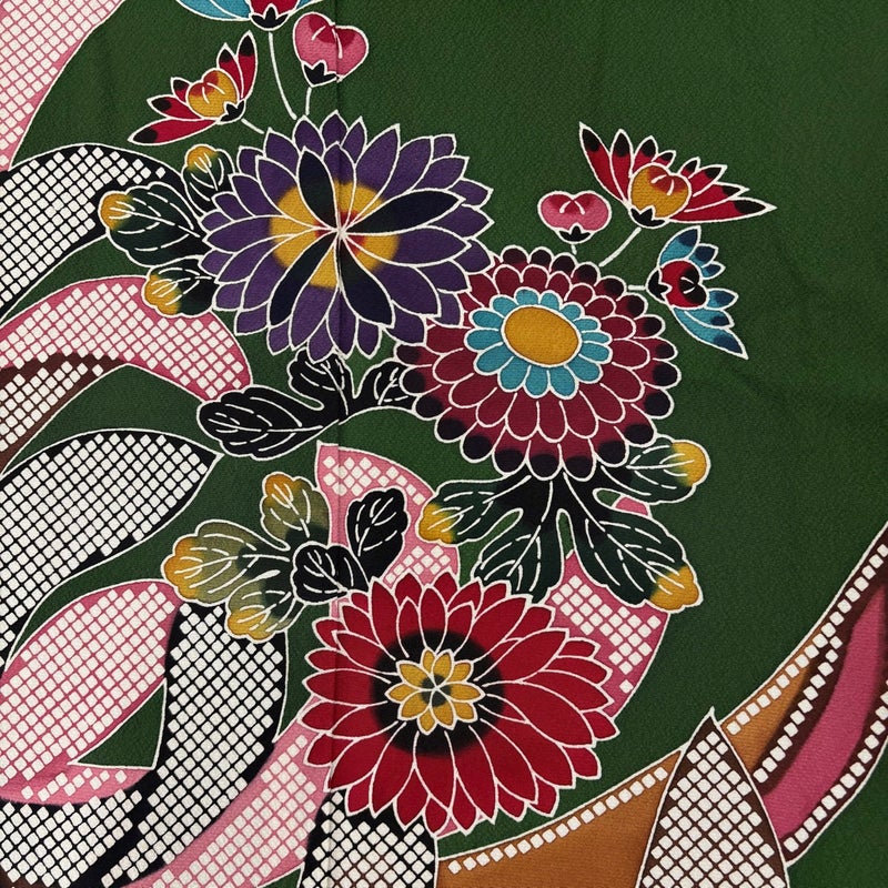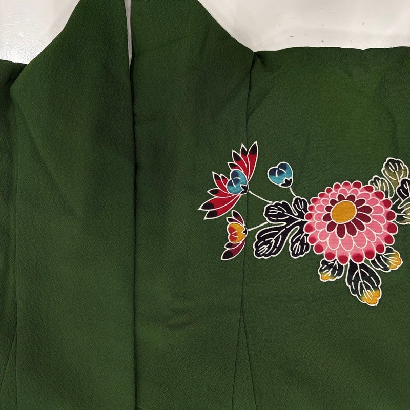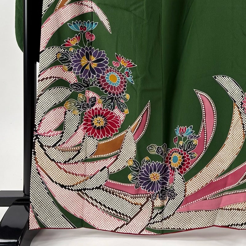 【振袖】 緑系 深緑 名品 B 約160cm~約169cm 裄丈69cm以上 (L)size 袖丈91cm以上 9990-29990 二万以下