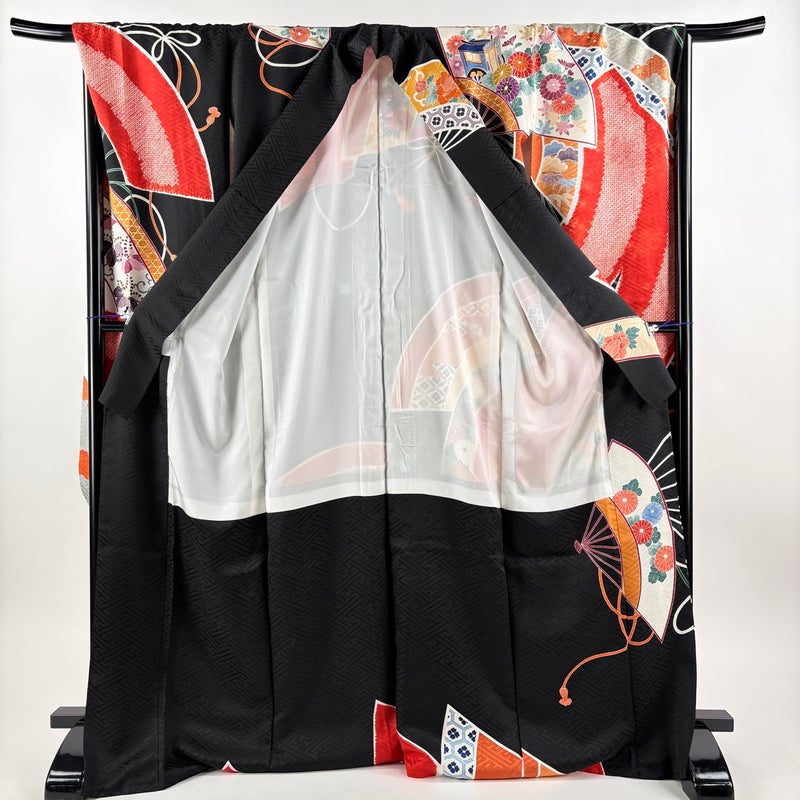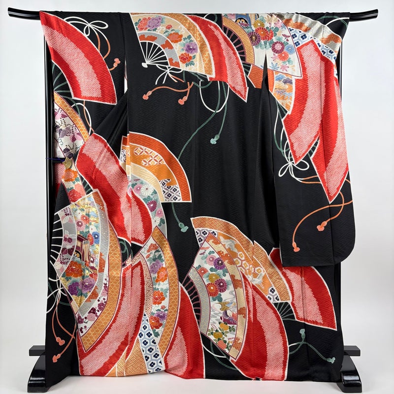 【振袖】 黒系 黒 秀品 B 約170cm~約179cm 裄丈69cm以上 (L)size 袖丈91cm以上 7990-9980 二万以下