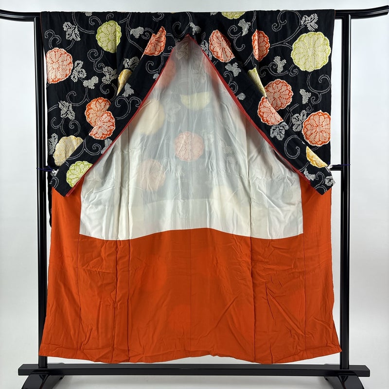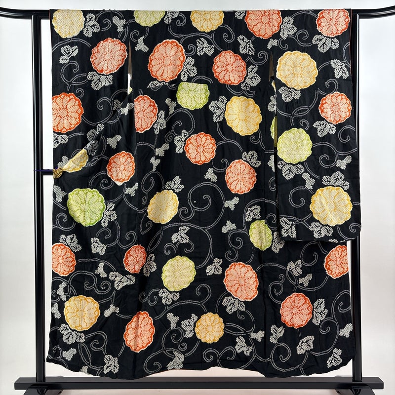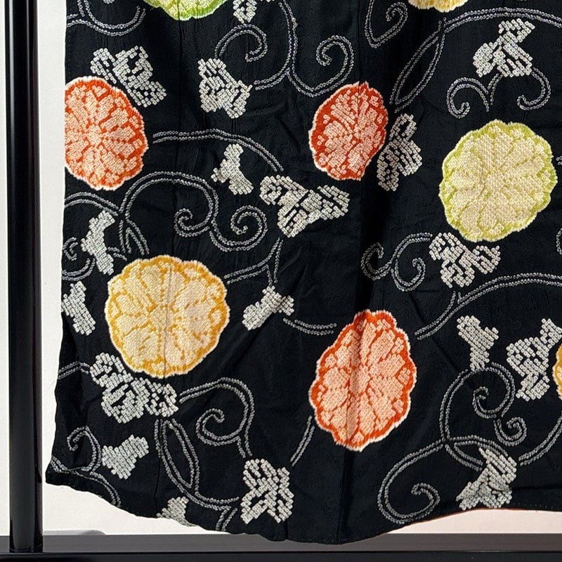 【振袖】 黒系 黒 秀品 C 約150cm~約159cm 裄丈63cm-64cm (S)size 袖丈91cm以上 7990-9980 二万以下