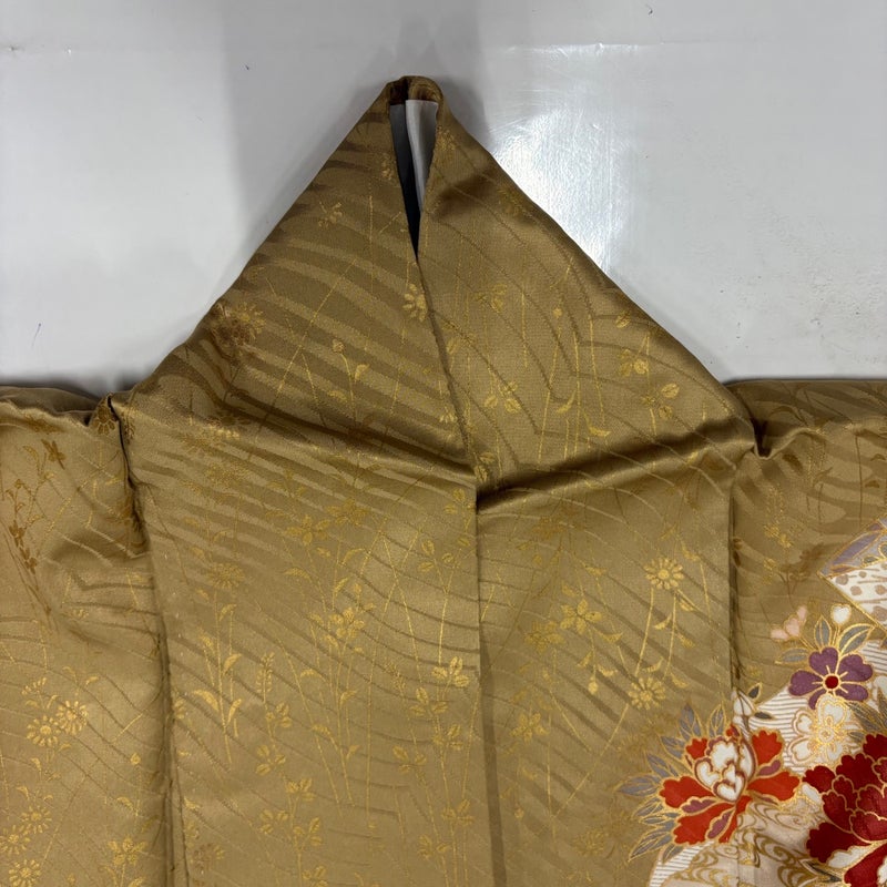 【振袖】 黄色系 黄土色 名品 A 約160cm~約169cm 裄丈66cm (M)size 袖丈91cm以上 9990-29990 美品 二万以下