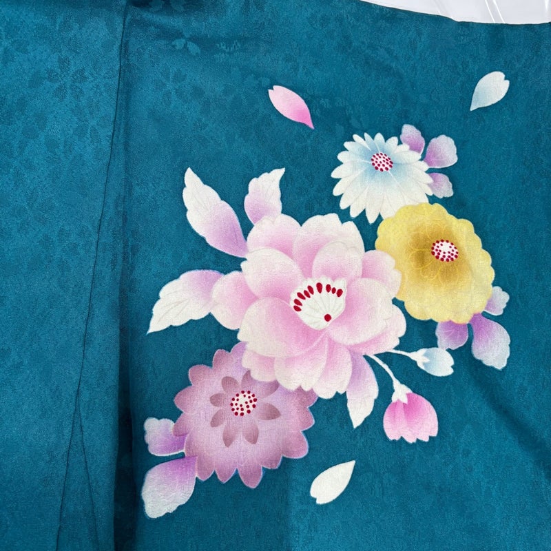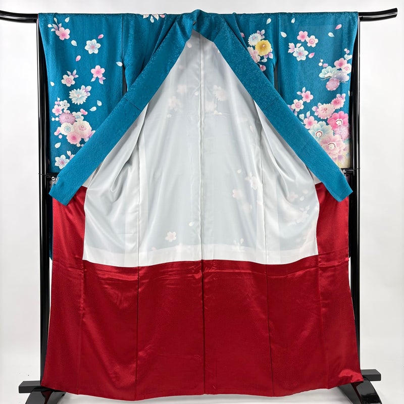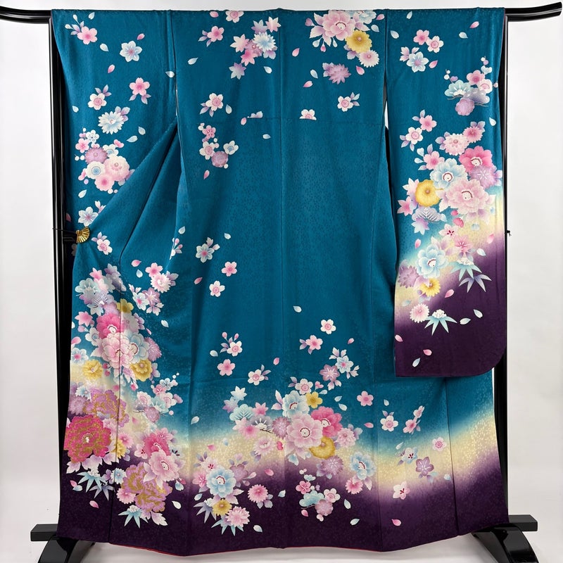 【振袖】 青系 青緑 名品 B 約160cm~約169cm 裄丈66cm (M)size 袖丈91cm以上 9990-29990 二万以下