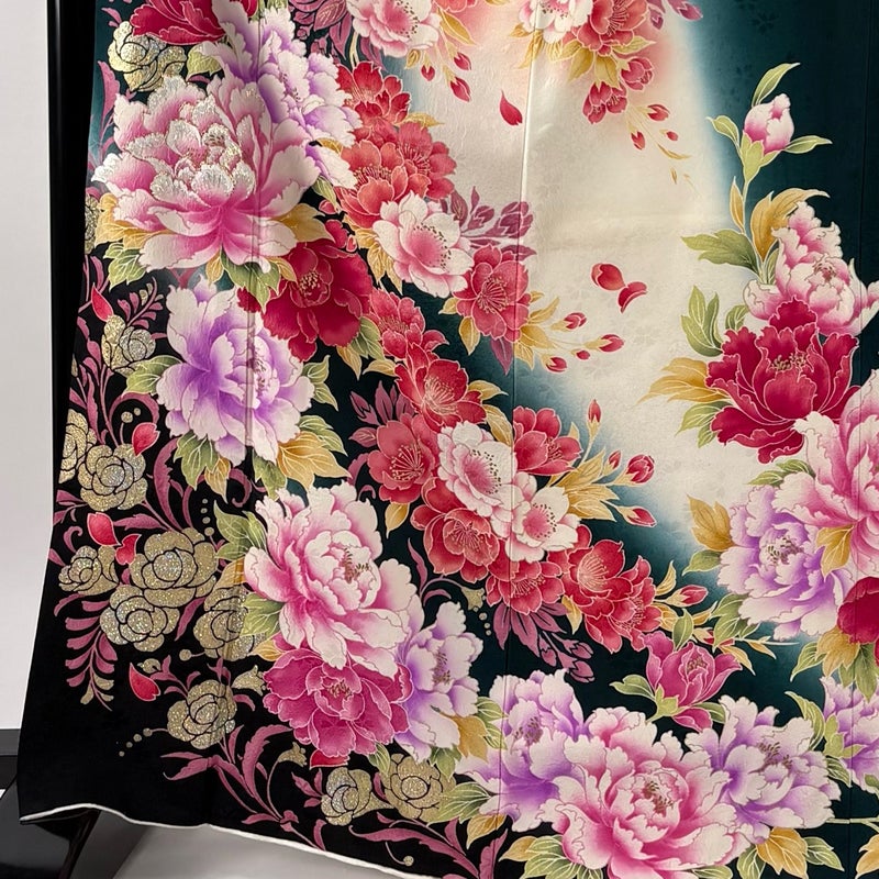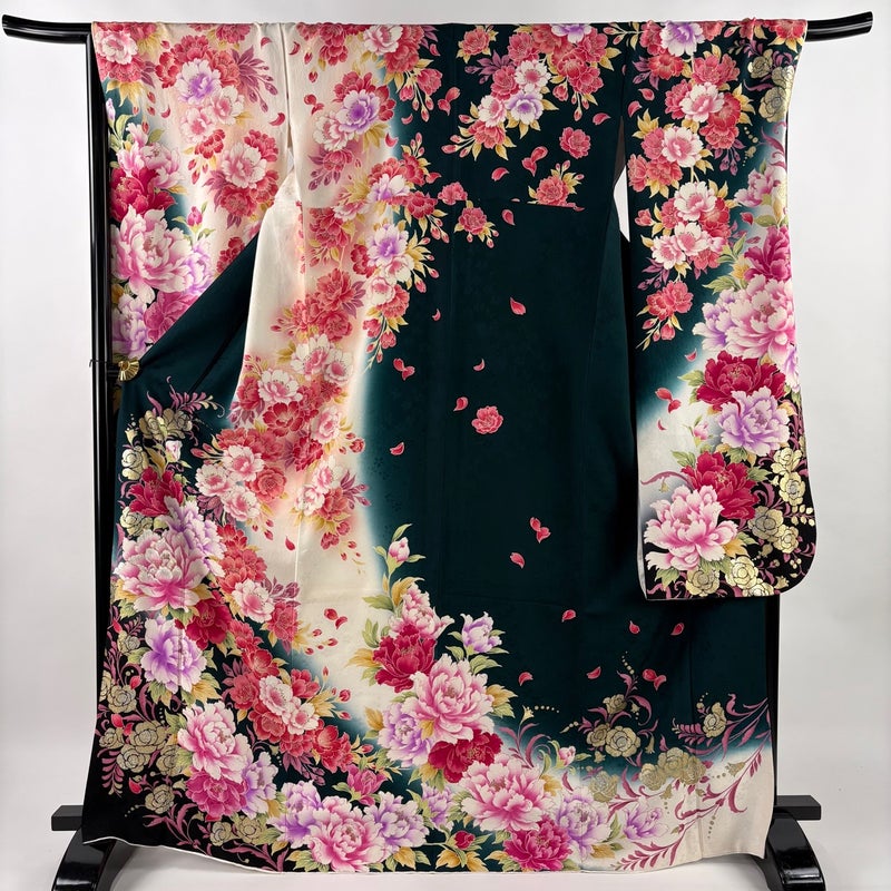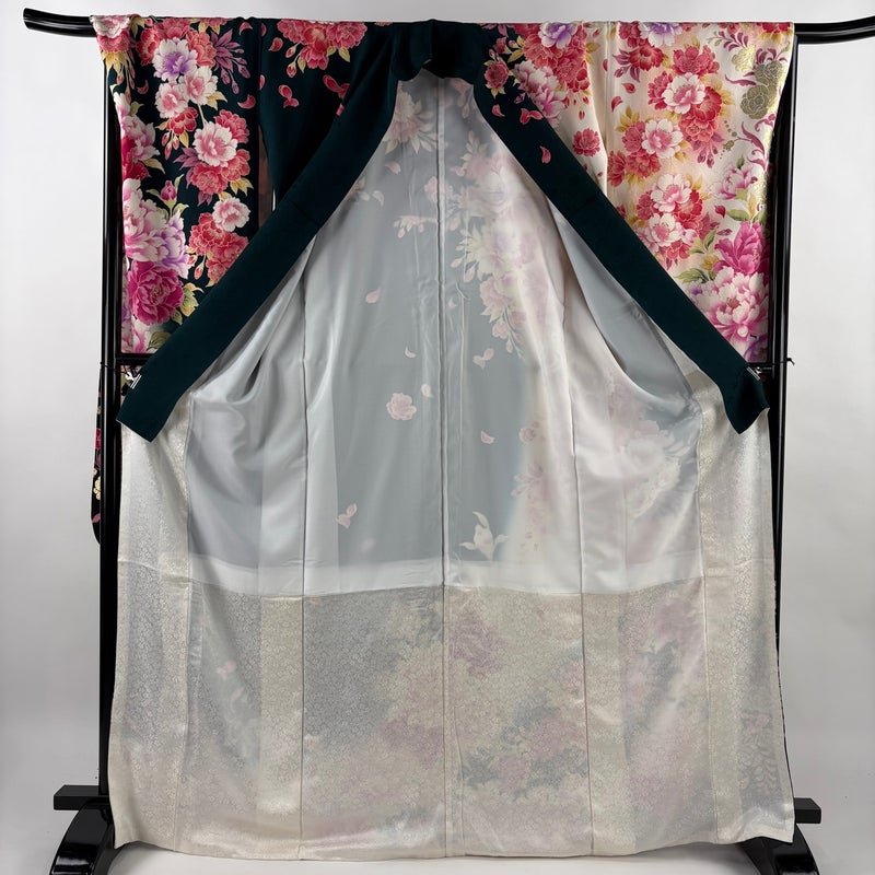 【振袖】 緑系 深緑 名品 A 約170cm~約179cm 裄丈67cm-68cm (L)size 袖丈91cm以上 9990-29990 美品 二万以下