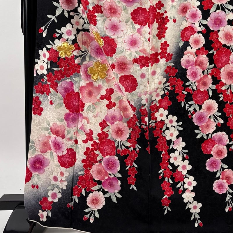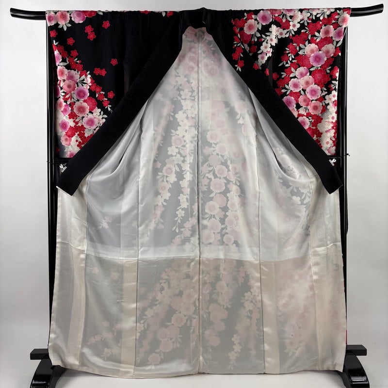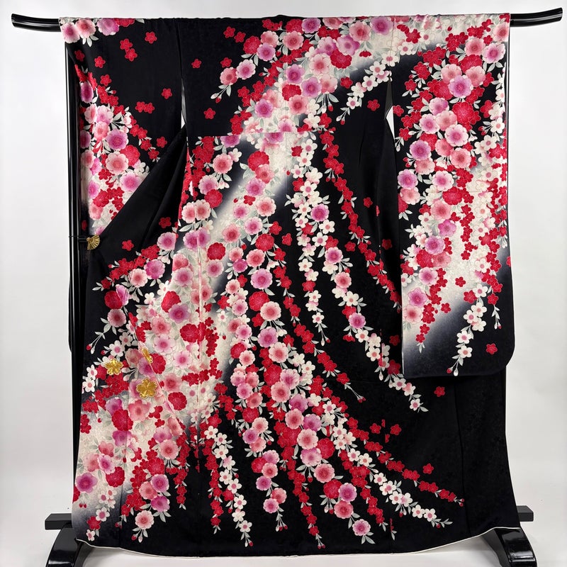 【振袖】 黒系 黒 名品 A 約160cm~約169cm 裄丈67cm-68cm (M)size 袖丈91cm以上 9990-29990 美品 二万以下