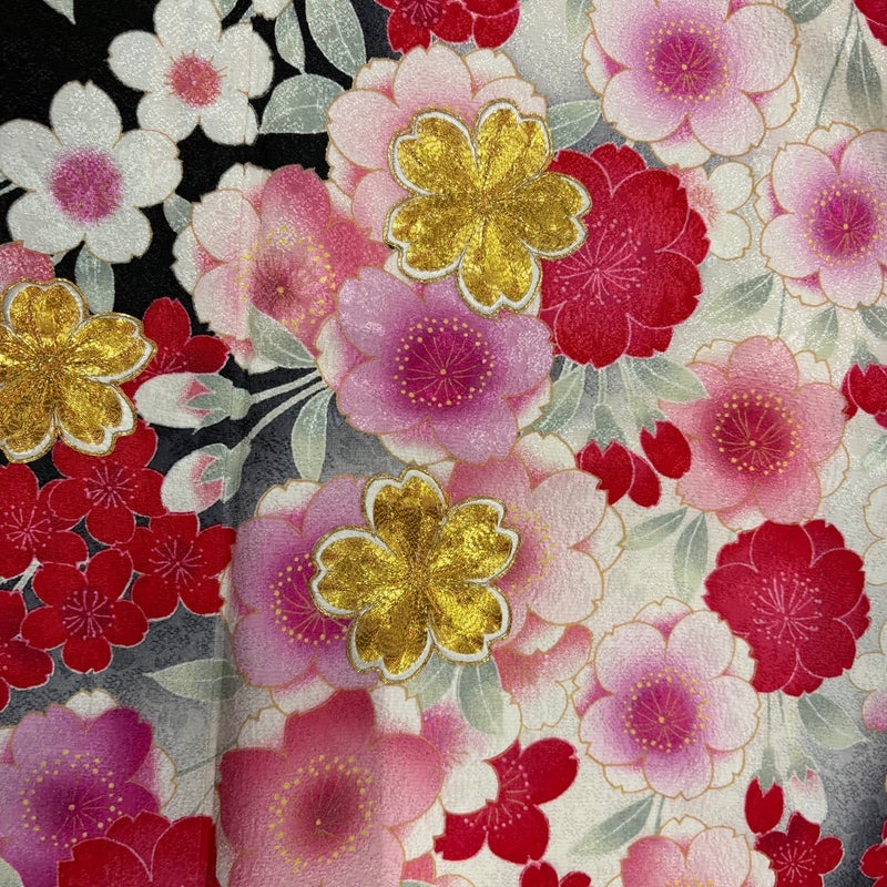 【着物ランク】名品 【素材】正絹 【身丈】約169cm 【裄丈】約67cm 【袖丈】約110cm 【袖幅】約35cm 【前幅】約24cm 【後幅】約29cm 【サイズ】M 【着物仕立て】袷 【着用時期】10~5月 【状態ランク】ランクA 【着物着用シーン】成人式、謝恩会