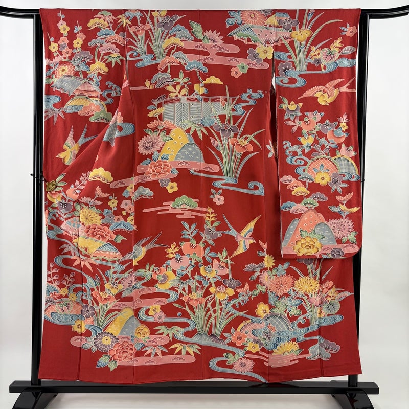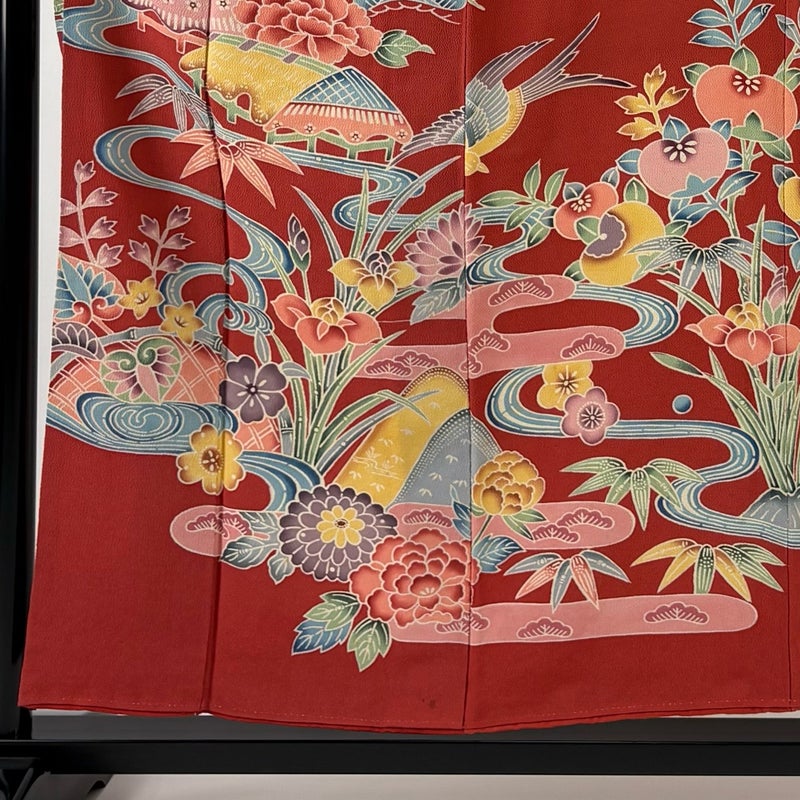 【振袖】 赤系 茜色 名品 C 約150cm~約159cm 裄丈65cm (M)size 袖丈91cm以上 9990-29990 二万以下