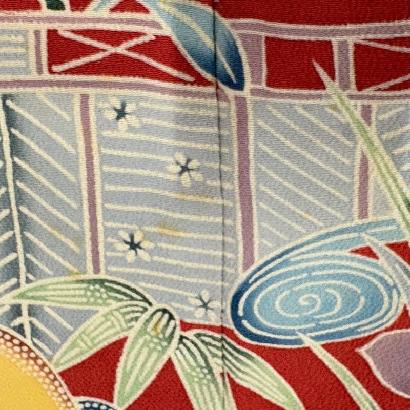 【着物ランク】名品 【素材】正絹 【身丈】約155.5cm 【裄丈】約65cm 【袖丈】約100.5cm 【袖幅】約33.5cm 【前幅】約24cm 【後幅】約29cm 【サイズ】M 【着物仕立て】袷 【着用時期】10~5月 【状態ランク】ランクC 【着物着用シーン】成人式、謝恩会