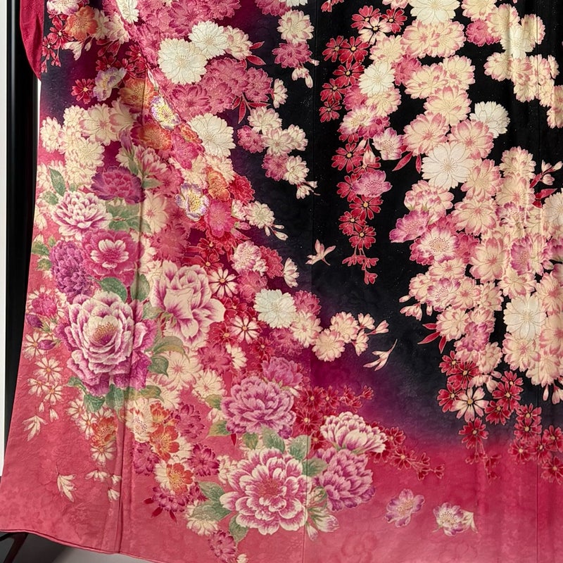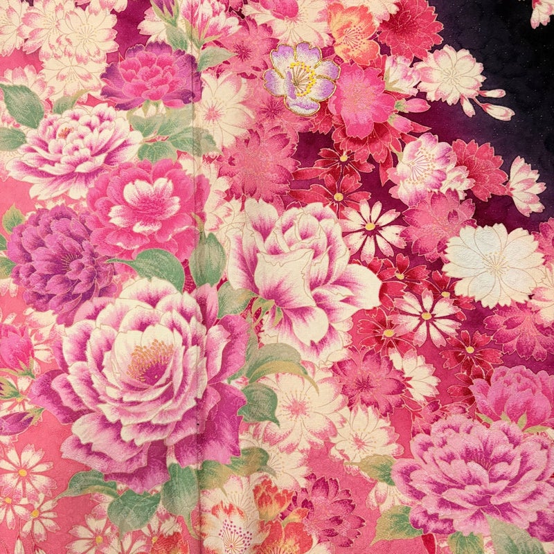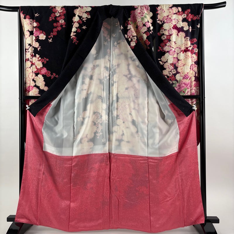 【振袖】 黒系 黒 名品 A 約160cm~約169cm 裄丈67cm-68cm (L)size 袖丈91cm以上 9990-29990 美品 二万以下