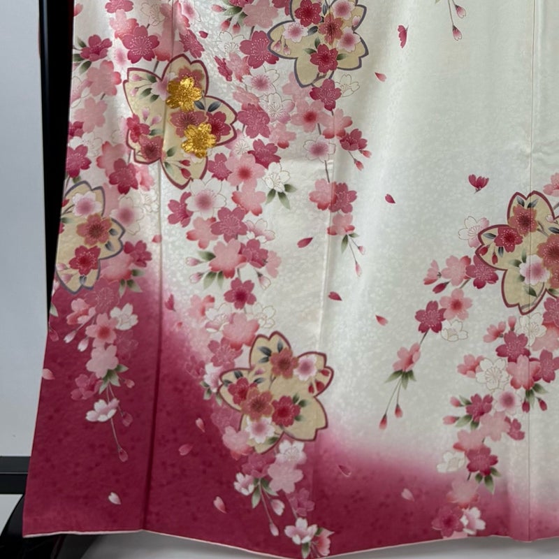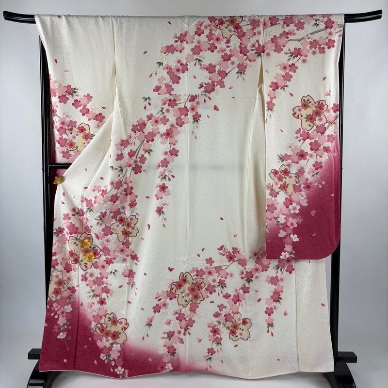 【振袖】 白系 クリーム 名品 A 約160cm~約169cm 裄丈67cm-68cm (L)size 袖丈91cm以上 9990-29990 美品 二万以下