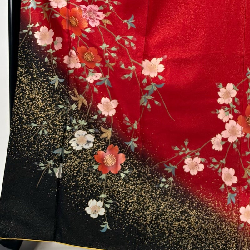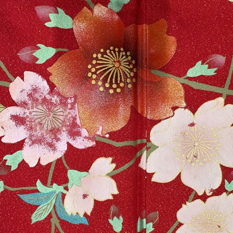 【振袖】 赤系 赤 秀品 C 約160cm~約169cm 裄丈67cm-68cm (M)size 袖丈91cm以上 7990-9980 二万以下
