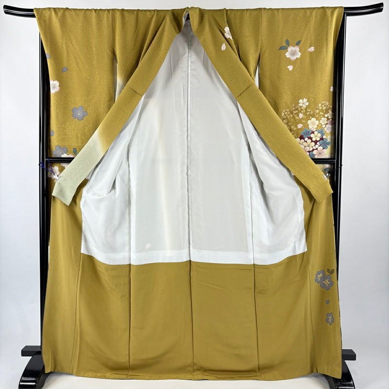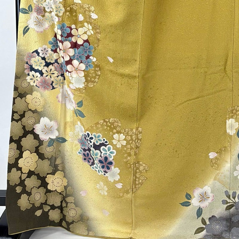 【振袖】 黄色系 からし色 秀品 B 約170cm~約179cm 裄丈69cm以上 (L)size 袖丈91cm以上 7990-9980 二万以下