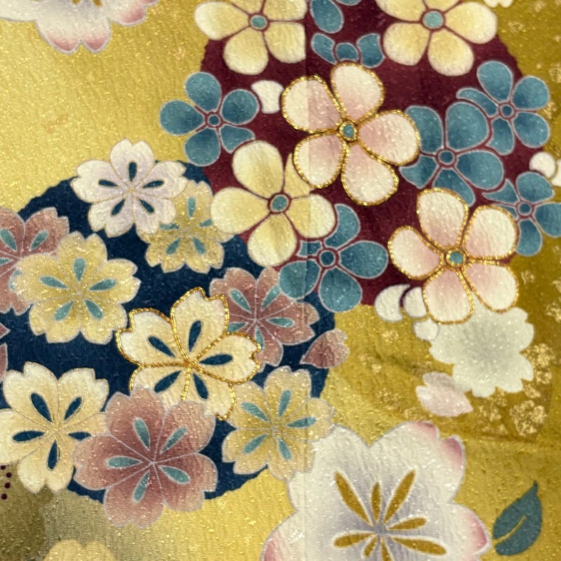 【着物ランク】秀品 【素材】正絹 【身丈】約170cm 【裄丈】約69cm 【袖丈】約111cm 【袖幅】約35.5cm 【前幅】約27cm 【後幅】約30.5cm 【サイズ】L 【着物仕立て】袷 【着用時期】10~5月 【状態ランク】ランクB 【着物着用シーン】成人式、謝恩会