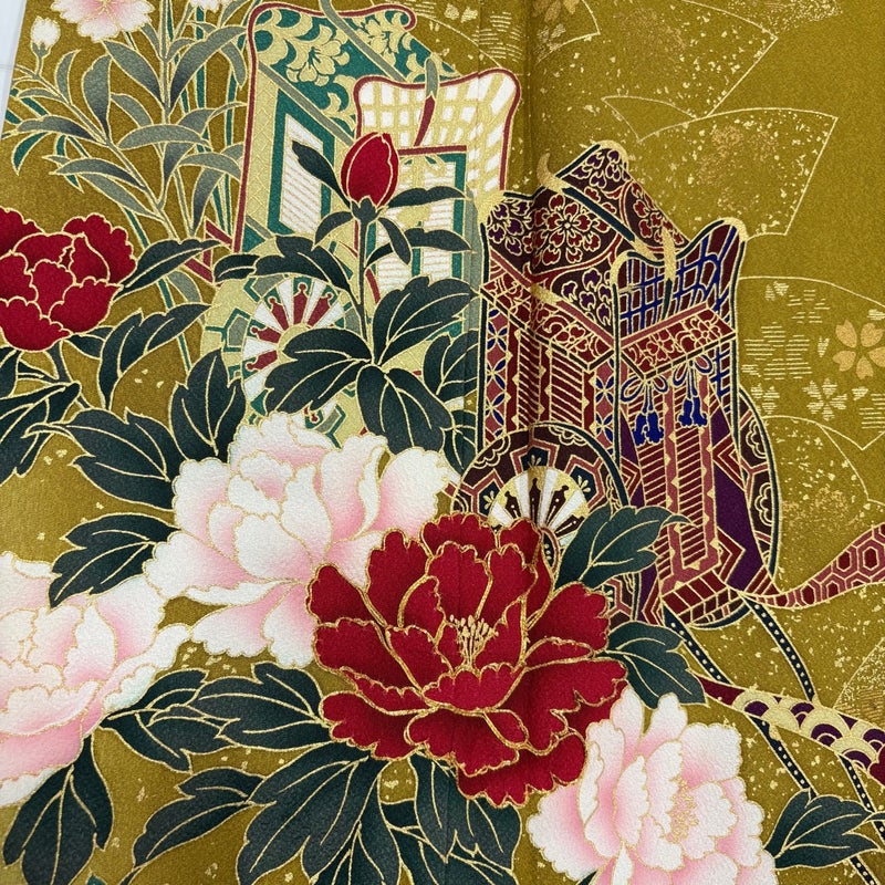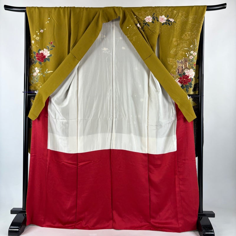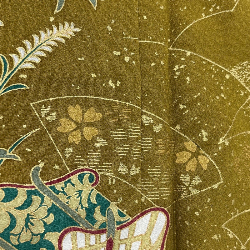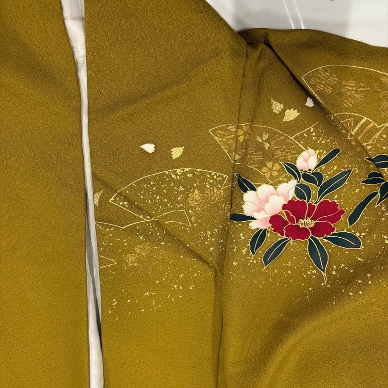 【振袖】 黄色系 山吹茶色 秀品 B 約160cm~約169cm 裄丈66cm (M)size 袖丈91cm以上 7990-9980 二万以下