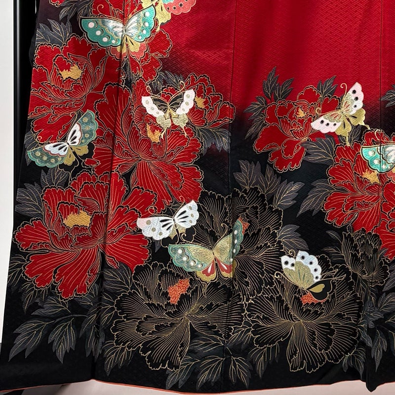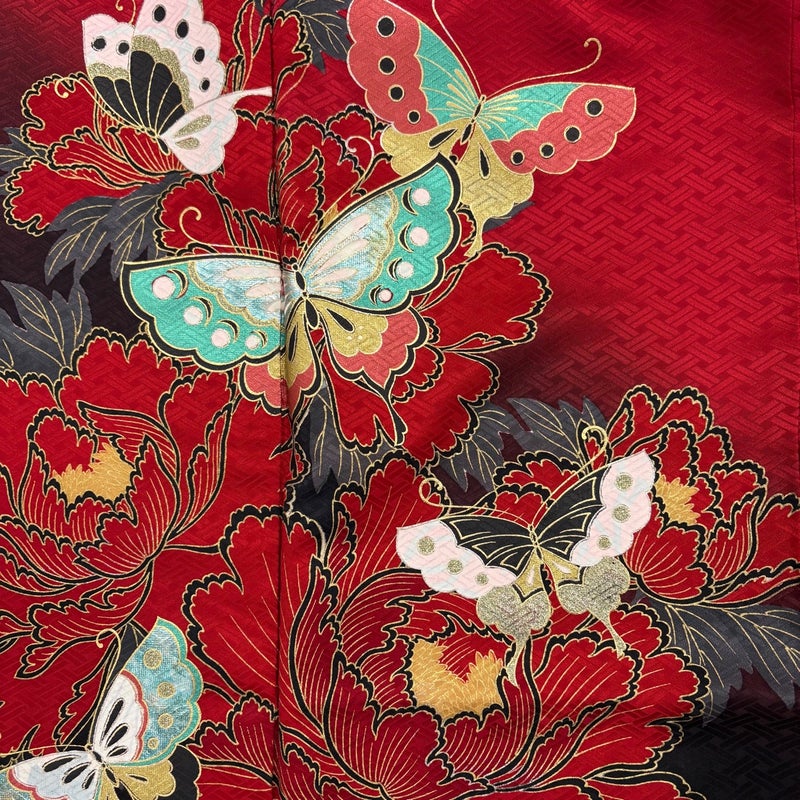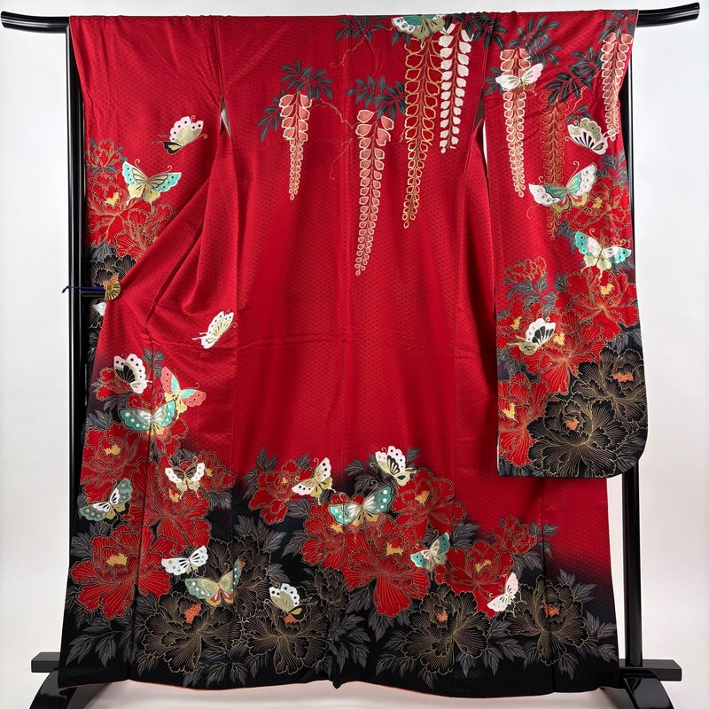 【振袖】 赤系 赤 秀品 B 約160cm~約169cm 裄丈67cm-68cm (L)size 袖丈91cm以上 7990-9980 二万以下