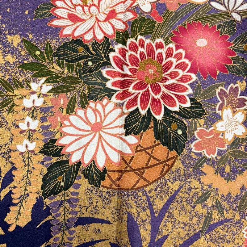 【着物ランク】秀品 【素材】正絹 【身丈】約162cm 【裄丈】約68cm 【袖丈】約114cm 【袖幅】約36cm 【前幅】約24cm 【後幅】約31cm 【サイズ】L 【着物仕立て】袷 【着用時期】10~5月 【状態ランク】ランクB 【着物着用シーン】成人式、謝恩会
