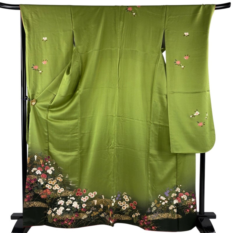 【振袖】 緑系 よもぎ色 秀品 A 約160cm~約169cm 裄丈69cm以上 (L)size 袖丈91cm以上 9990-29990 美品 二万以下