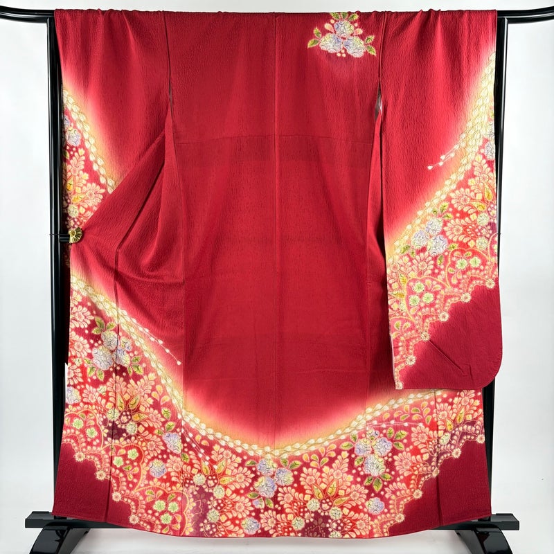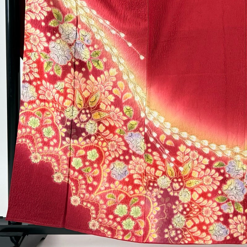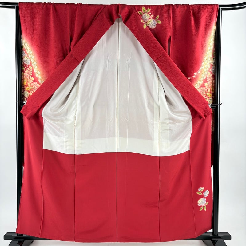 【振袖】 赤系 赤 秀品 B 約160cm~約169cm 裄丈67cm-68cm (L)size 袖丈91cm以上 7990-9980 二万以下