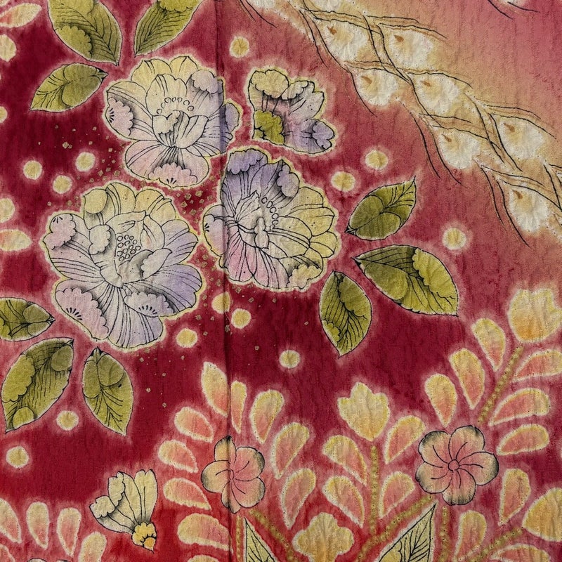 【着物ランク】秀品 【素材】正絹 【身丈】約162cm 【裄丈】約67.5cm 【袖丈】約112.5cm 【袖幅】約35.5cm 【前幅】約23.5cm 【後幅】約28.5cm 【サイズ】L 【着物仕立て】袷 【着用時期】10~5月 【状態ランク】ランクB 【着物着用シーン】成人式、謝恩会