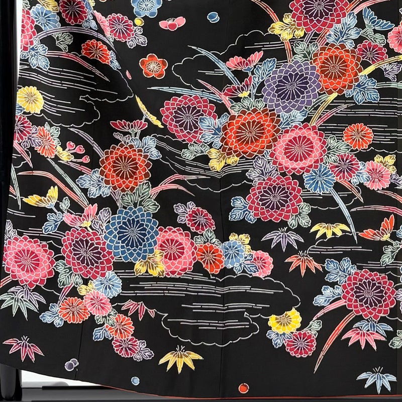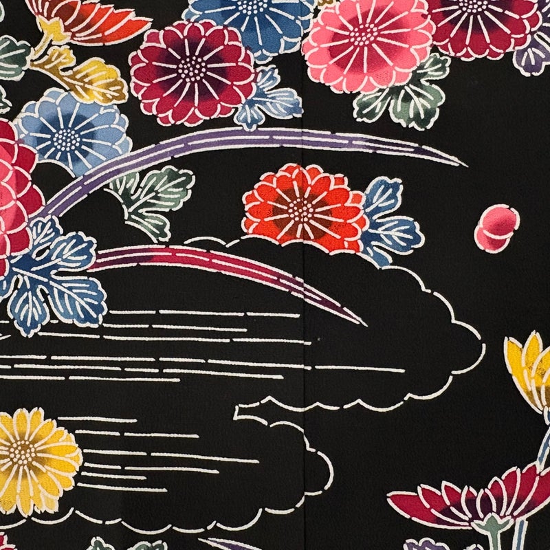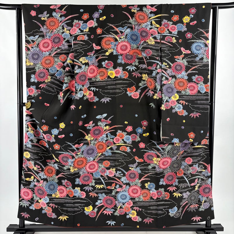【振袖】 黒系 黒 秀品 C 約150cm~約159cm 裄丈62cm以下 (S)size 袖丈91cm以上 7990-9980 二万以下