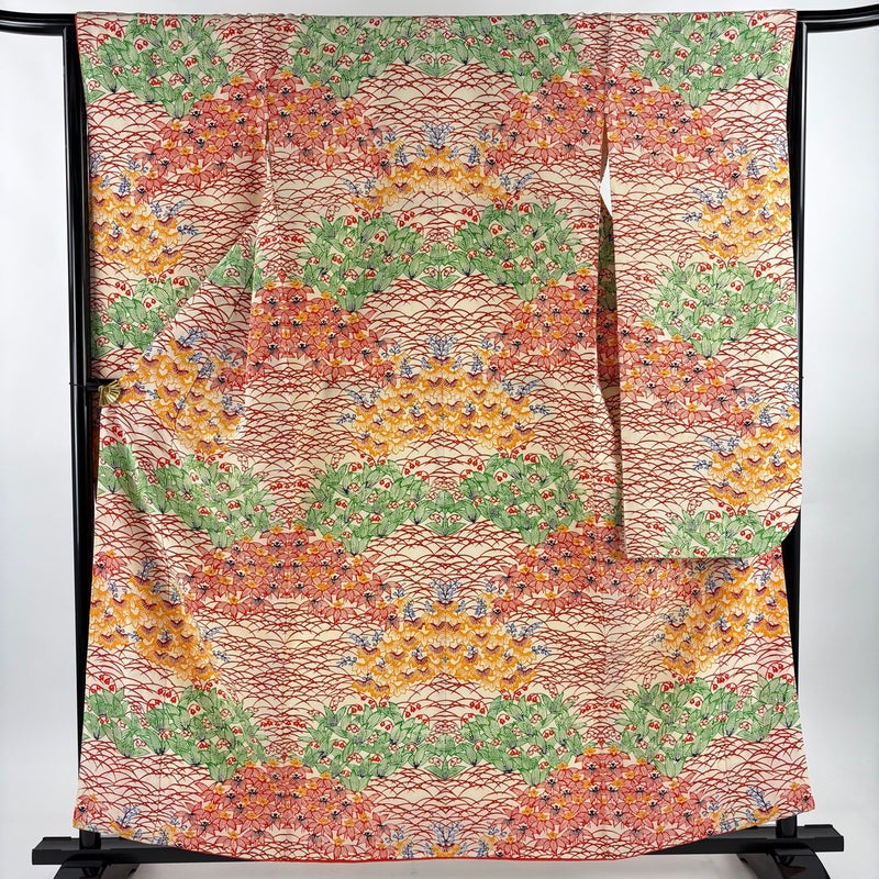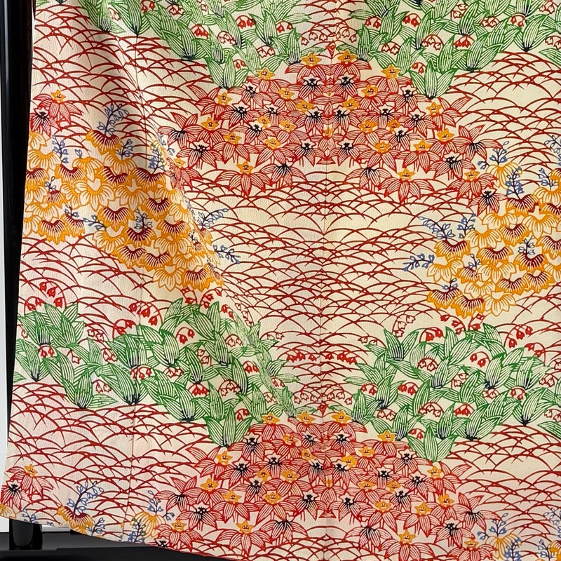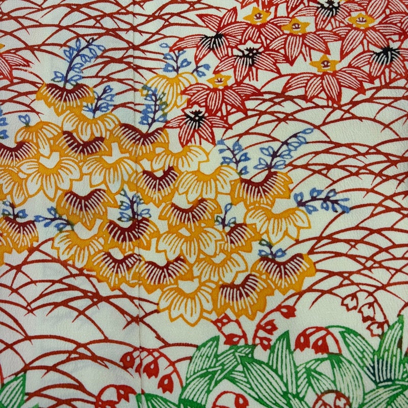 【着物ランク】秀品 【素材】正絹 【身丈】約160cm 【裄丈】約65cm 【袖丈】約105cm 【袖幅】約33.5cm 【前幅】約25cm 【後幅】約30.5cm 【サイズ】M 【着物仕立て】袷 【着用時期】10~5月 【状態ランク】ランクB 【着物着用シーン】成人式、謝恩会