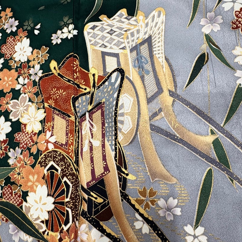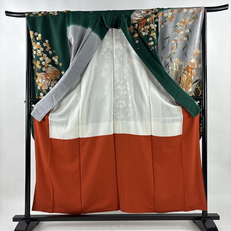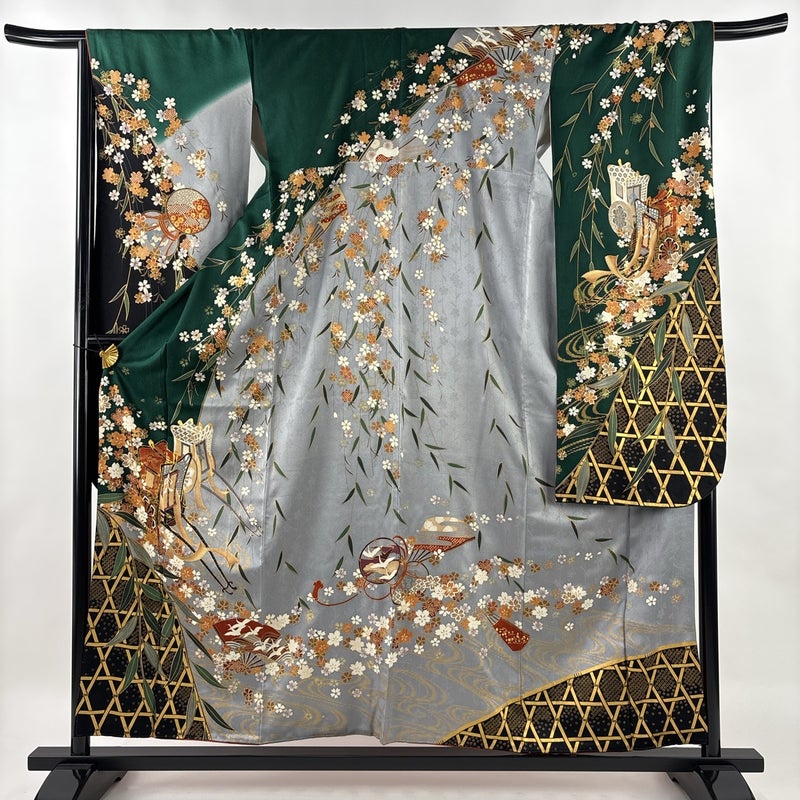 【振袖】 緑系 深緑 秀品 B 約150cm~約159cm 裄丈67cm-68cm (M)size 袖丈91cm以上 7990-9980 二万以下