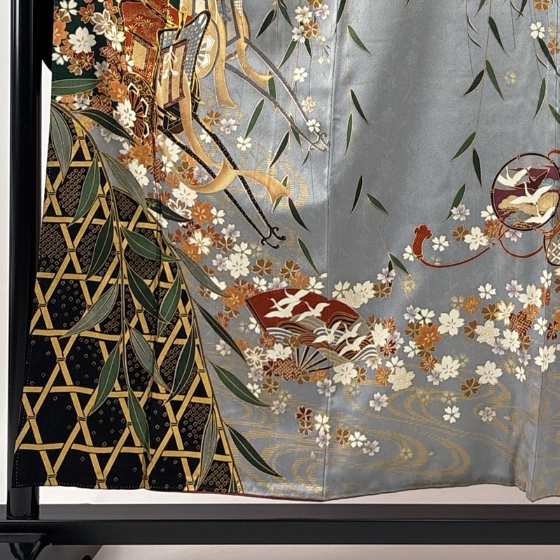 【着物ランク】秀品 【素材】正絹 【身丈】約158.5cm 【裄丈】約67cm 【袖丈】約103cm 【袖幅】約34cm 【前幅】約23.5cm 【後幅】約29.5cm 【サイズ】M 【着物仕立て】袷 【着用時期】10~5月 【状態ランク】ランクB 【着物着用シーン】成人式、謝恩会