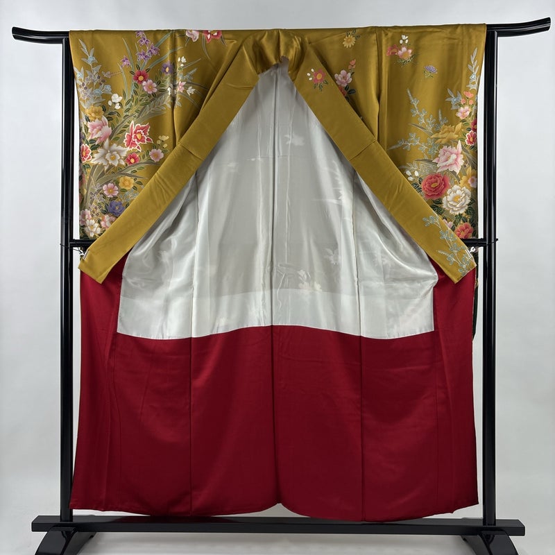 【振袖】 黄色系 山吹茶色 秀品 B 約150cm~約159cm 裄丈65cm (M)size 袖丈91cm以上 7990-9980 二万以下