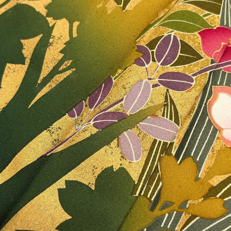 【着物ランク】秀品 【素材】正絹 【身丈】約157cm 【裄丈】約65cm 【袖丈】約105.5cm 【袖幅】約33.5cm 【前幅】約23.5cm 【後幅】約29.5cm 【サイズ】M 【着物仕立て】袷 【着用時期】10~5月 【状態ランク】ランクB 【着物着用シーン】成人式、謝恩会