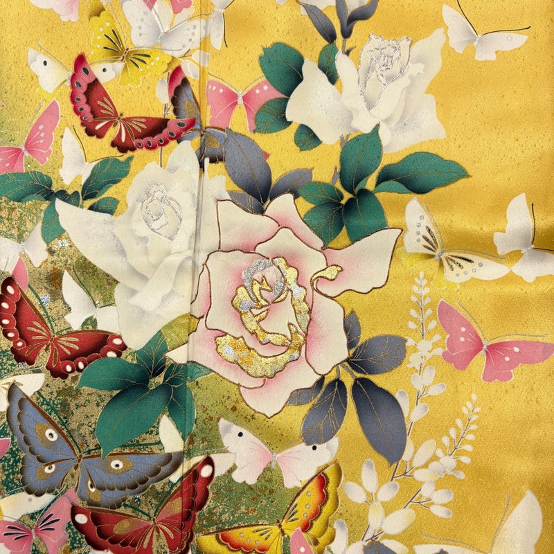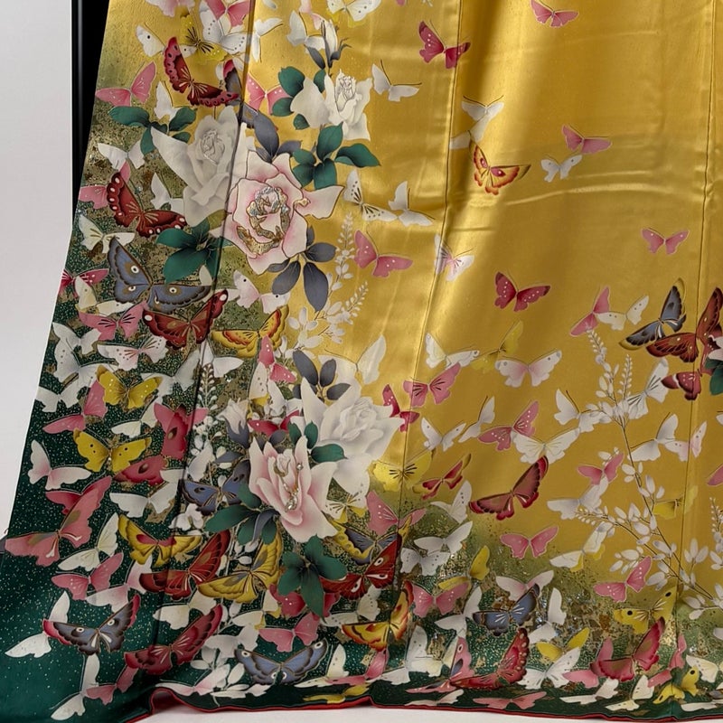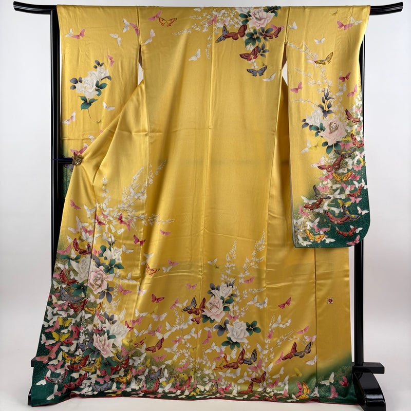 【振袖】 黄色系 山吹色 秀品 C 約170cm~約179cm 裄丈67cm-68cm (L)size 袖丈91cm以上 7990-9980 二万以下