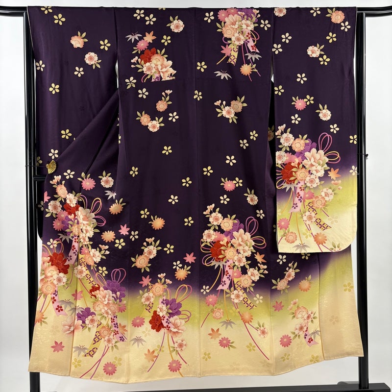 【振袖】 紫系 紫 秀品 B 約150cm~約159cm 裄丈65cm (M)size 袖丈91cm以上 7990-9980 二万以下