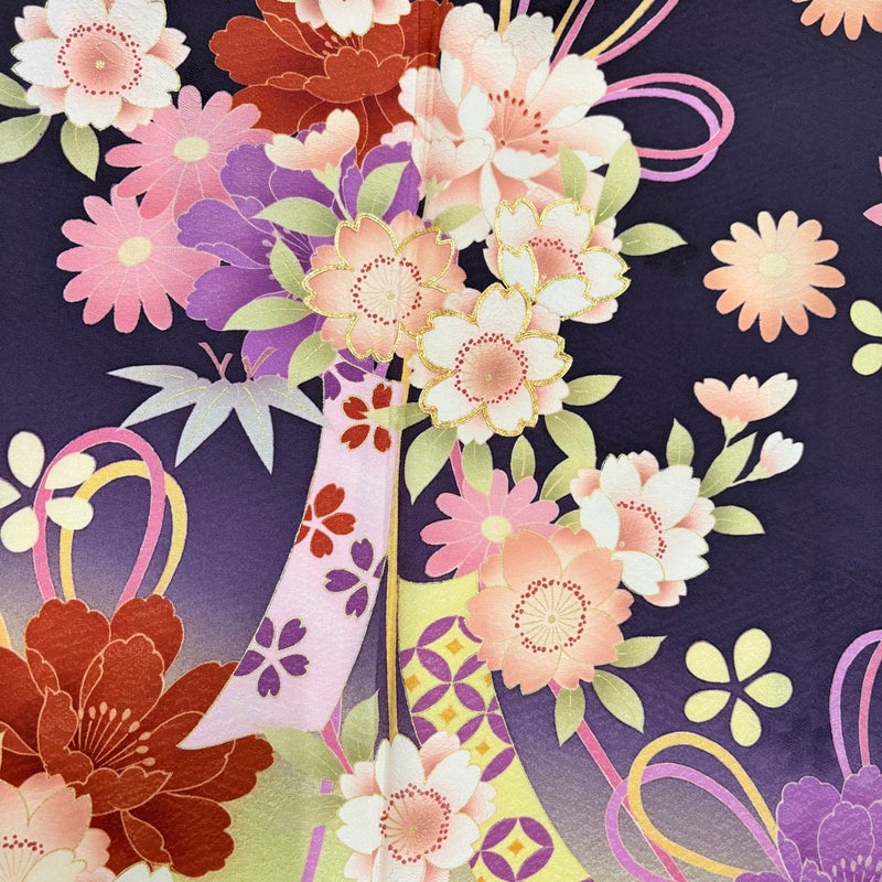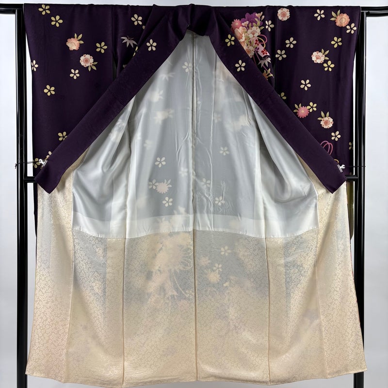 【着物ランク】秀品 【素材】正絹 【身丈】約150.5cm 【裄丈】約65.5cm 【袖丈】約96.5cm 【袖幅】約32.5cm 【前幅】約22cm 【後幅】約29.5cm 【サイズ】M 【着物仕立て】袷 【着用時期】10~5月 【状態ランク】ランクB 【着物着用シーン】成人式、謝恩会