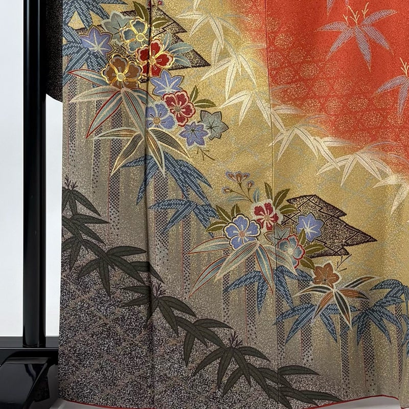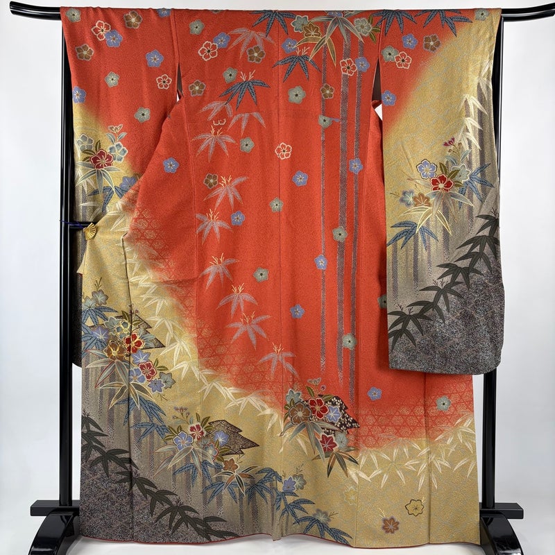 【振袖】 赤系 オレンジ 秀品 A 約160cm~約169cm 裄丈67cm-68cm (L)size 袖丈91cm以上 9990-29990 美品 二万以下