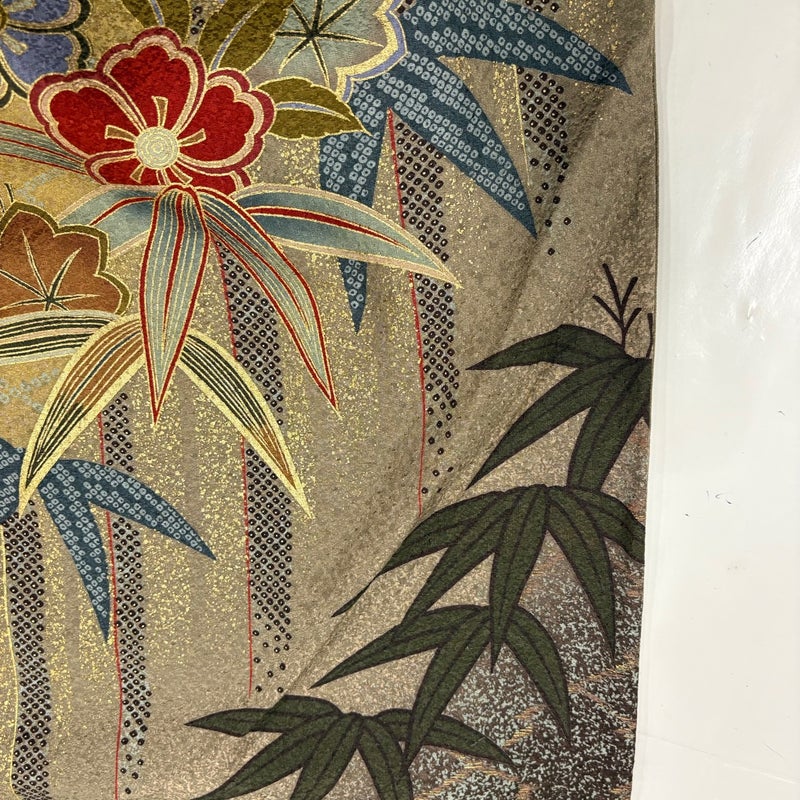 【着物ランク】秀品 【素材】正絹 【身丈】約167cm 【裄丈】約67.5cm 【袖丈】約113cm 【袖幅】約35cm 【前幅】約24cm 【後幅】約29cm 【サイズ】L 【着物仕立て】袷 【着用時期】10~5月 【状態ランク】ランクA 【着物着用シーン】成人式、謝恩会