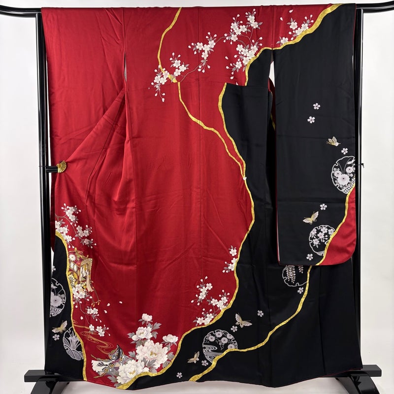 【振袖】 赤系 赤 秀品 B 約160cm~約169cm 裄丈65cm (M)size 袖丈91cm以上 7990-9980 二万以下