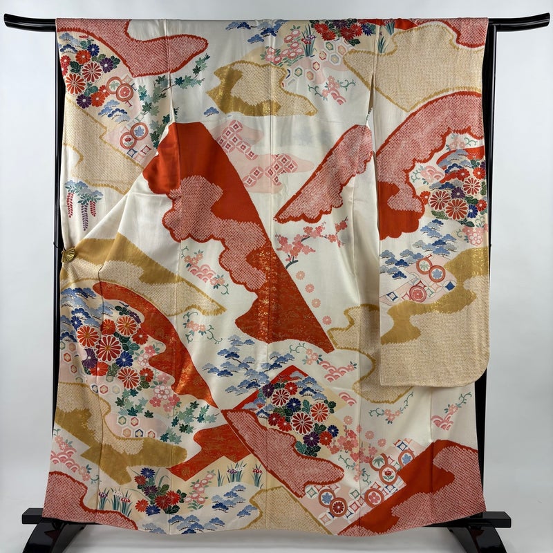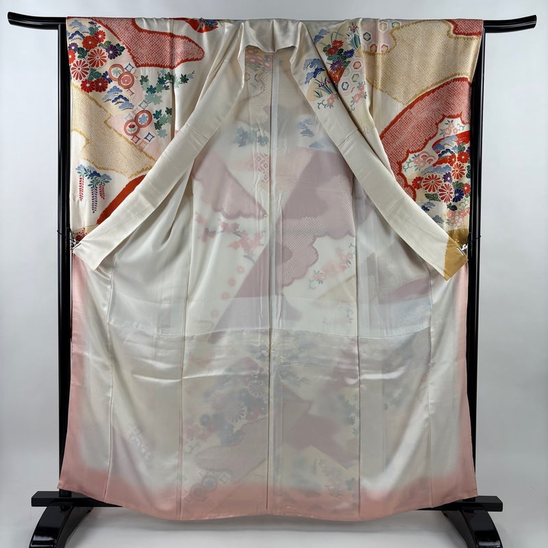 【振袖】 白系 クリーム 秀品 C 約160cm~約169cm 裄丈66cm (M)size 袖丈91cm以上 7990-9980 二万以下
