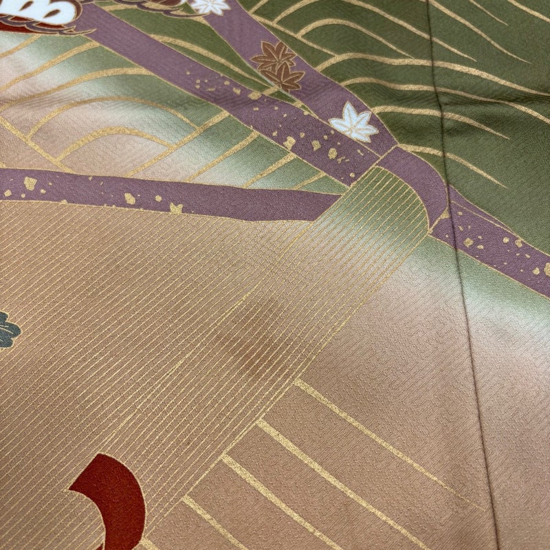 【着物ランク】秀品 【素材】正絹 【身丈】約161cm 【裄丈】約65cm 【袖丈】約111cm 【袖幅】約34.5cm 【前幅】約24.5cm 【後幅】約29.5cm 【サイズ】M 【着物仕立て】袷 【着用時期】10~5月 【状態ランク】ランクC 【着物着用シーン】成人式、謝恩会