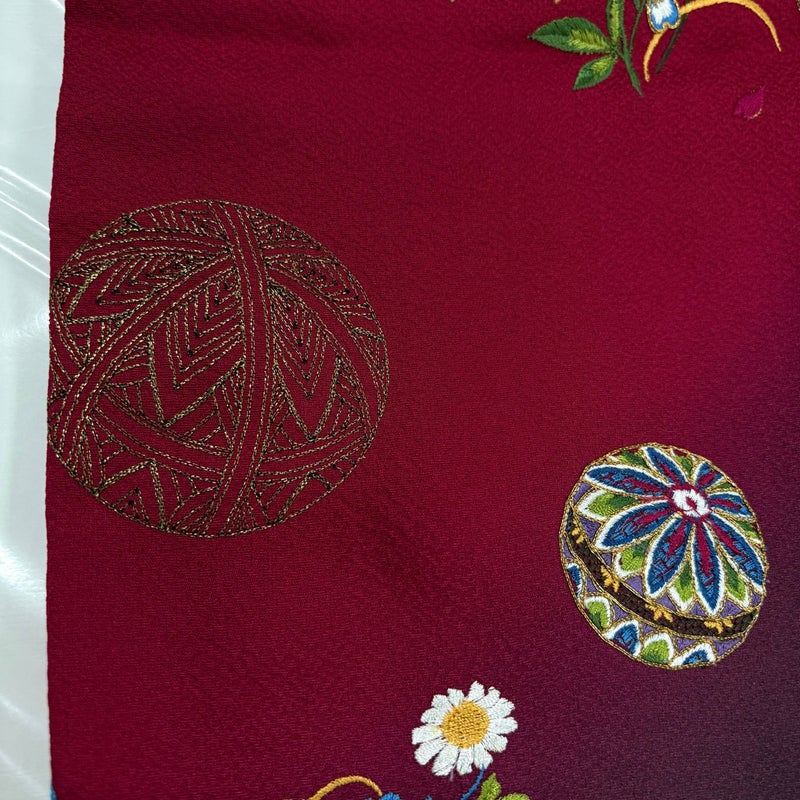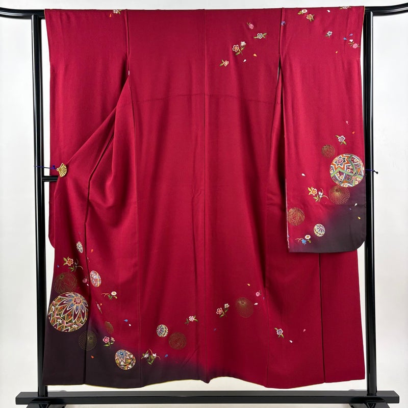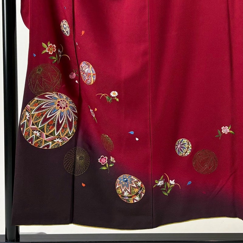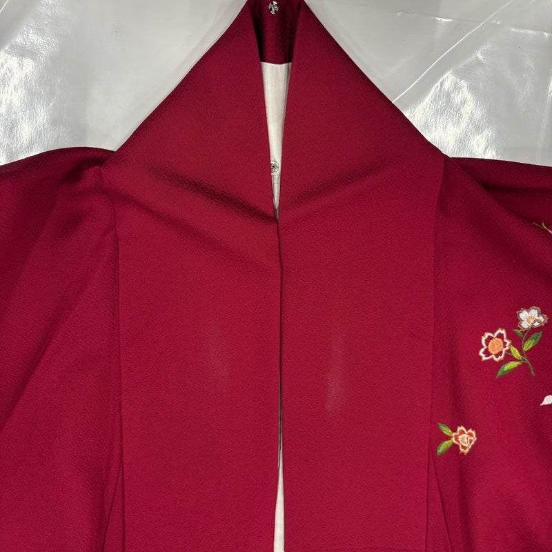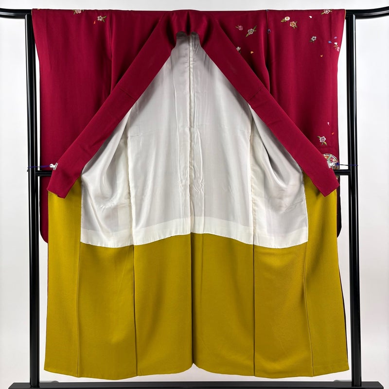 【振袖】 赤系 えんじ色 秀品 B 約150cm~約159cm 裄丈63cm-64cm (S)size 袖丈91cm以上 7990-9980 二万以下