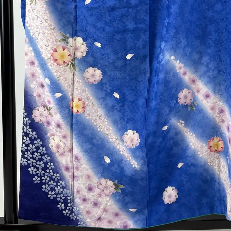 【振袖】 青系 青 秀品 B 約150cm~約159cm 裄丈63cm-64cm (M)size 袖丈91cm以上 7990-9980 二万以下