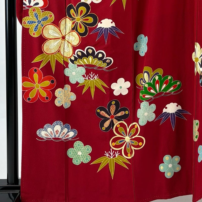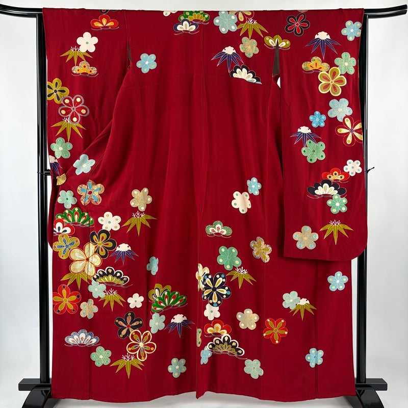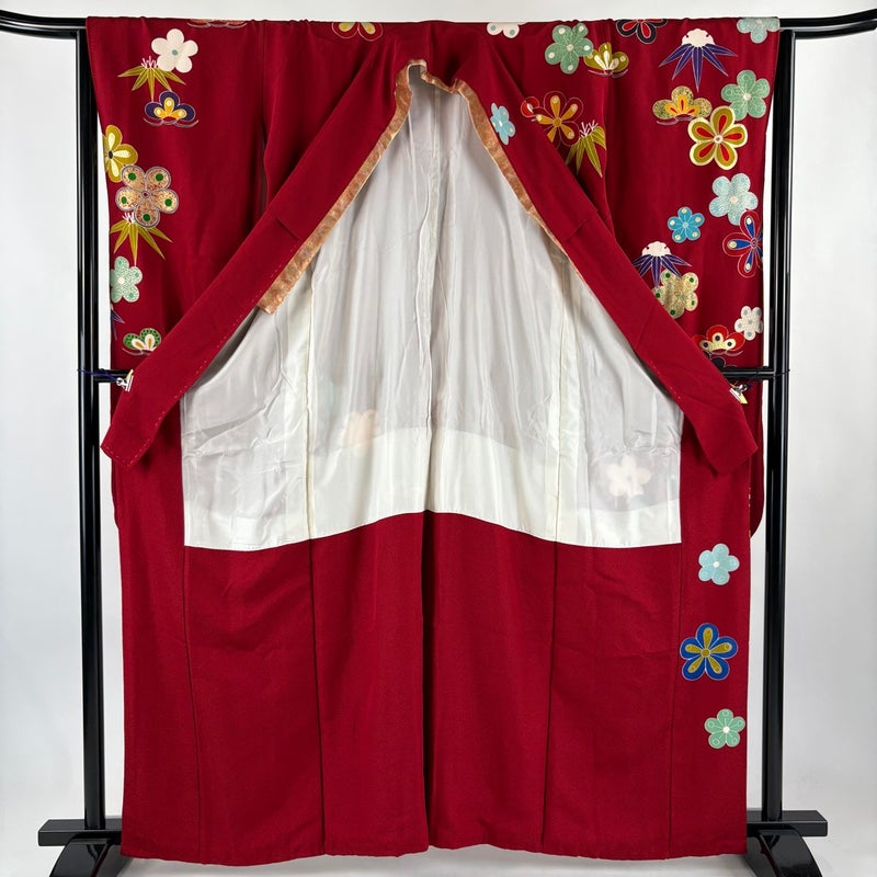 【振袖】 赤系 赤 秀品 B 約160cm~約169cm 裄丈63cm-64cm (M)size 袖丈91cm以上 7990-9980 二万以下
