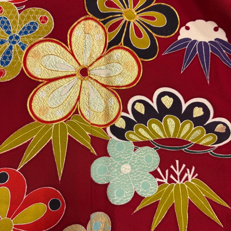 【着物ランク】秀品 【素材】正絹 【身丈】約162.5cm 【裄丈】約64.5cm 【袖丈】約103cm 【袖幅】約33cm 【前幅】約25cm 【後幅】約31cm 【サイズ】M 【着物仕立て】袷 【着用時期】10~5月 【状態ランク】ランクB 【着物着用シーン】成人式、謝恩会
