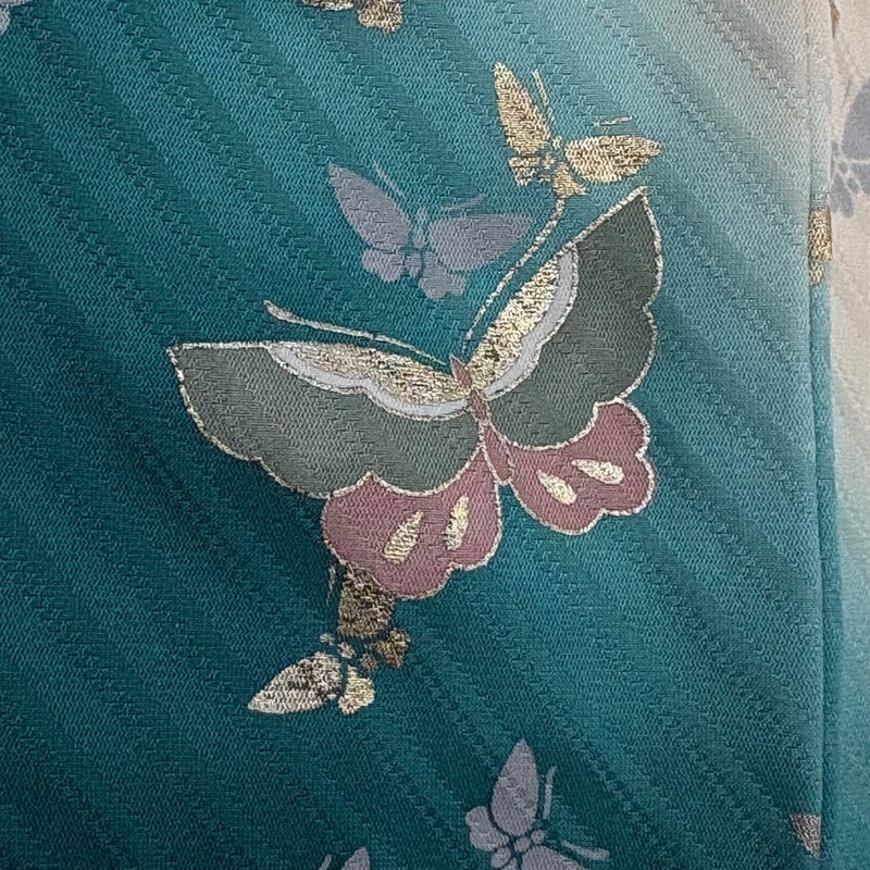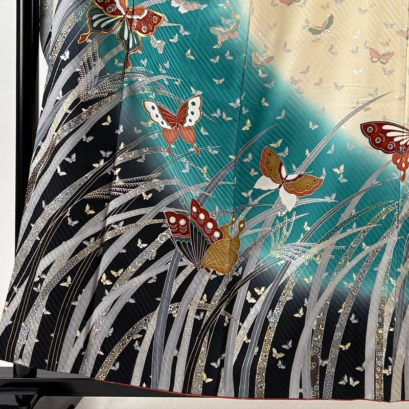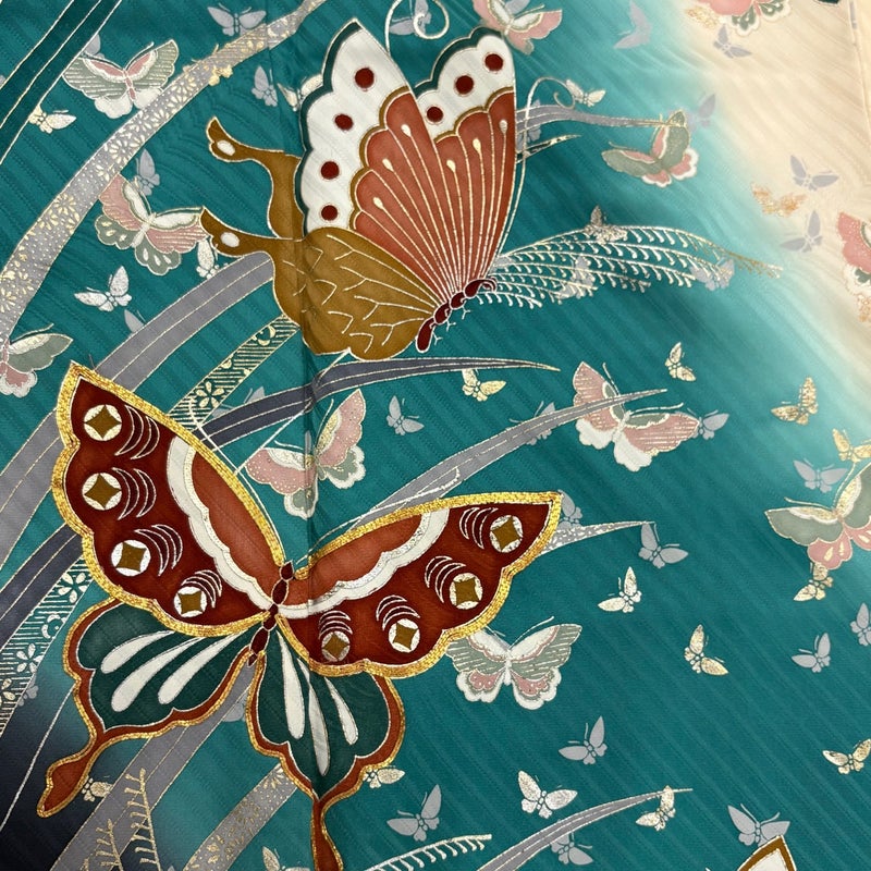 【振袖】 青系 青緑 秀品 B 約160cm~約169cm 裄丈65cm (M)size 袖丈91cm以上 7990-9980 二万以下