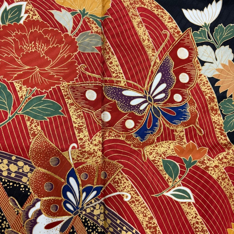 【振袖】 黒系 黒 秀品 A 約160cm~約169cm 裄丈65cm (M)size 袖丈91cm以上 9990-29990 美品 二万以下